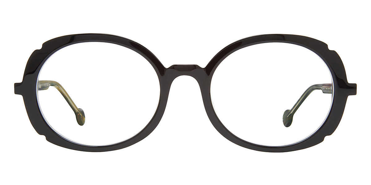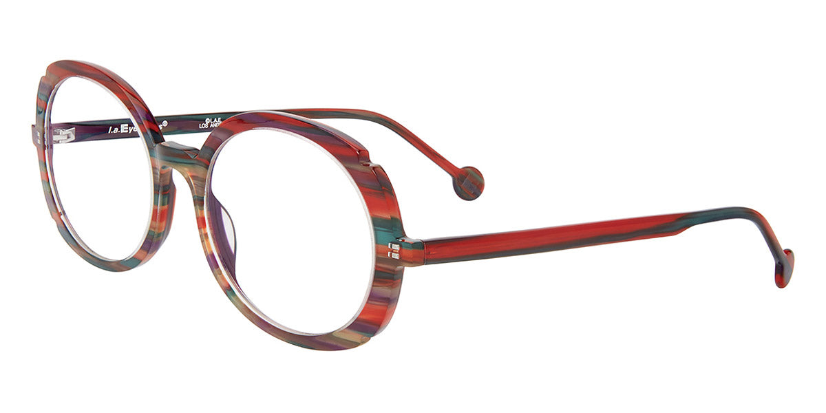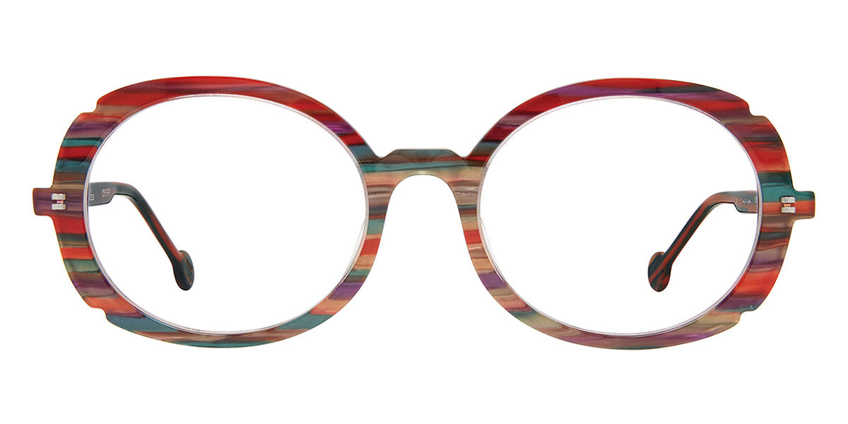 SPOONS Eyeglasses by L.A.Eyeworks. Material: HD Acetate, Size: 51-19-138, Color: Black Bean, Cicada, Fathom, Red Caps, Rosy Boa. Meet the SPOONS glasses from l.a.Eyeworks - the perfect blend of style and whimsy! With their delightful looped sensibility, these glasses will add an extra dose of charm to your look. The subtle indentations and vibrant colors make them a true feast for the eyes. Whether you're looking to make a bold statement or add a playful touch, SPOONS glasses have you covered. Get ready to turn heads and stand out from the crowd with these unique eyewear delights!