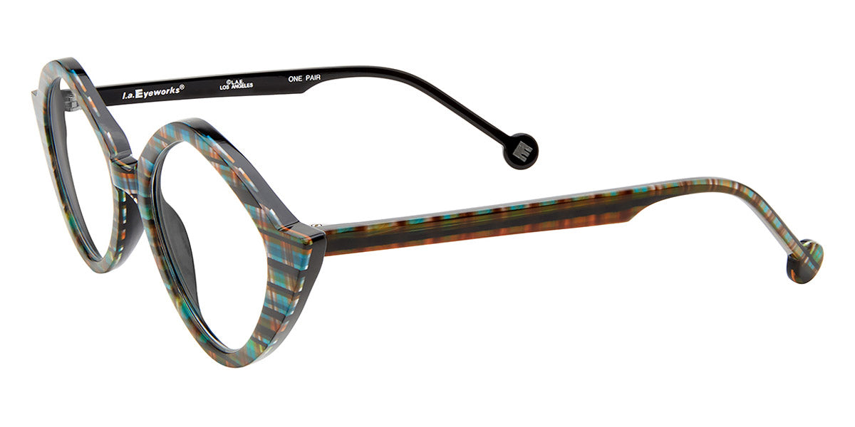 SUNFISH Eyeglasses by L.A.Eyeworks. Material: Acetate, Size: 52-20-137, Color: Bouquet, Comet, Milan, Rad Plaid, Tee Shirt Tortoise. Take your eyewear game to the next level with SUNFISH glasses from l.a.Eyeworks. These whimsical winged beauties are designed to energize your style and accentuate your features. With their sculpted silhouette, they effortlessly animate your brow lines and accentuate your cheekbones. Available in a range of eye-catching colors, SUNFISH is not just an accessory, but a fashion statement that will turn heads wherever you go.