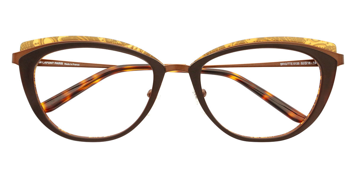 Brigitte Eyeglasses by Lafont. Color: Black 1023,Black 1040,Blue 3099,Brown 5135,Panther 380,Purple 7087,Tortoiseshell 5097,Tortoiseshell 5104, Size: 52-18-134. If you are a fan of the charming and elegant Parisian style, the Lafont glasses are to your liking! By experimenting with shapes, materials and colors, the designers create eye-catching styles that will add an artistic look to any outfit. The frames feature delicate silhouettes and fascinating colorations to stand out from the rest. The process of manufacturing a pair of Lafont glasses takes 8 to 14 weeks and involves 120 to 220 successive operations, depending on the complexity of the frame. Most of these processes are manual, which makes Lafont eyewear a real work-of-art.