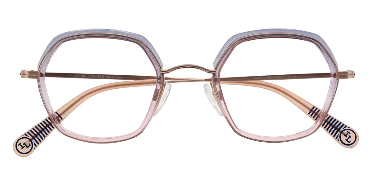 JUJU_INSERT Eyeglasses by Lafont. Color: Golden,Pink, Size: 49. If you are a fan of the charming and elegant Parisian style, the Lafont glasses are to your liking! By experimenting with shapes, materials and colors, the designers create eye,catching styles that will add an artistic look to any outfit. The frames feature delicate silhouettes and fascinating colorations to stand out from the rest. The process of manufacturing a pair of Lafont glasses takes 8 to 14 weeks and involves 120 to 220 successive operations, depending on the complexity of the frame. Most of these processes are manual, which makes Lafont eyewear a real work,of,art.