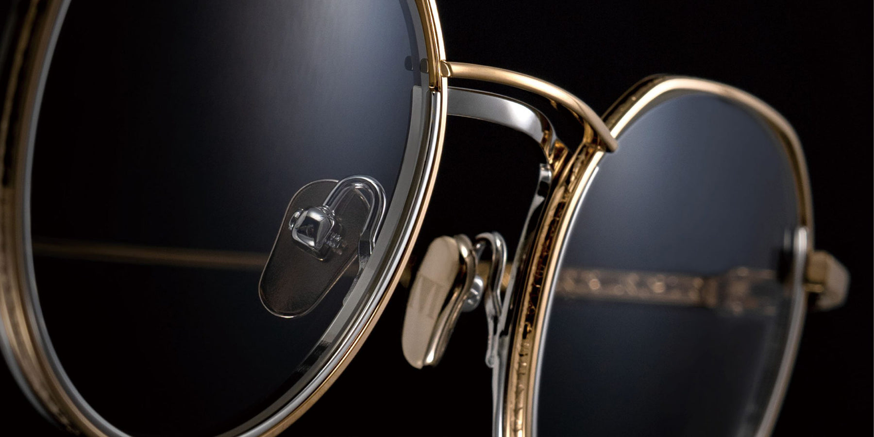 ORCHID Eyeglasses by Masunaga. Color: 19 BK/BK, 21 GP/BK, 35 BL/AT-S, 41 GP/Silver, Size: 47-22-140, Material: Titanium