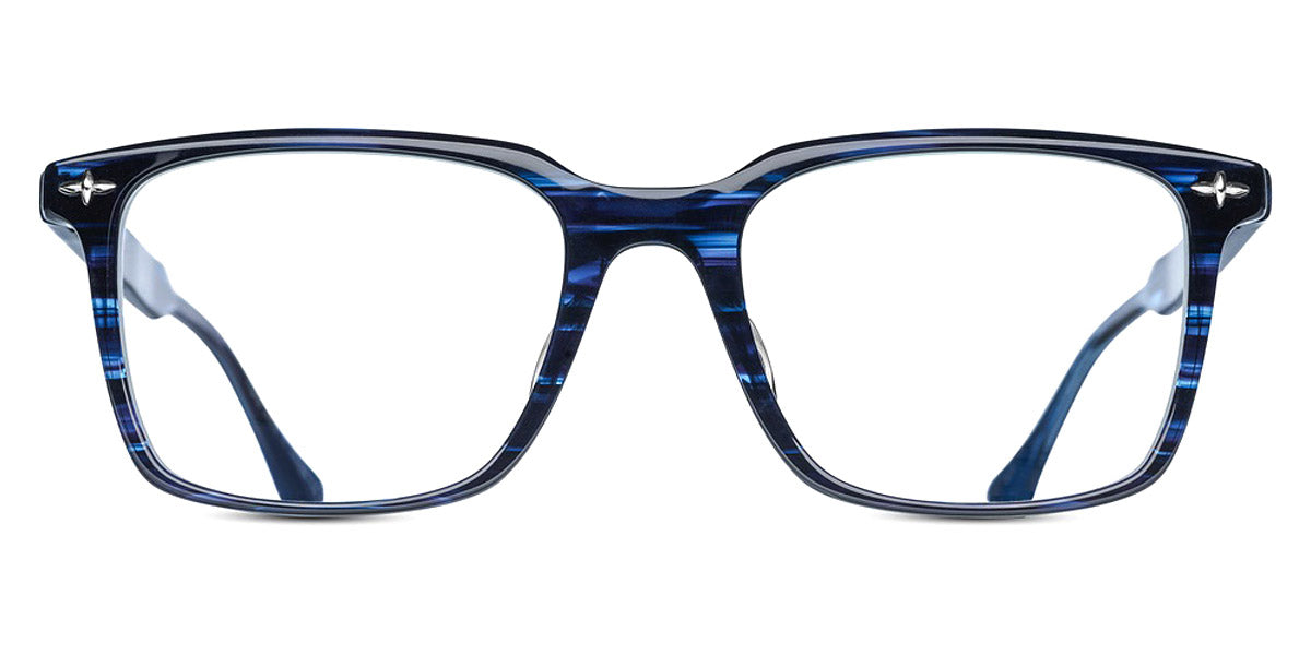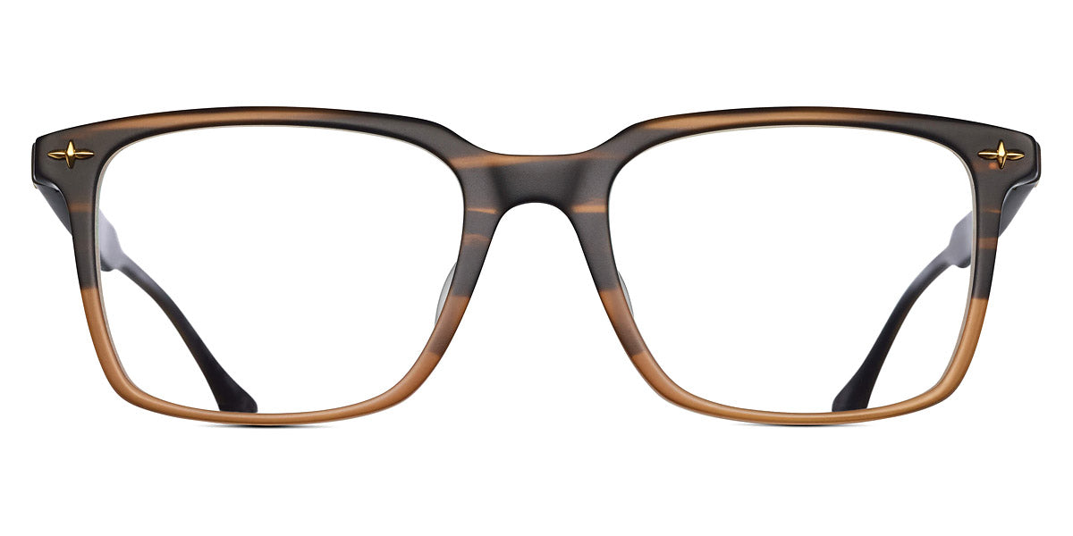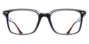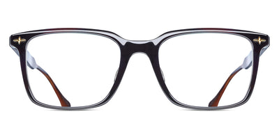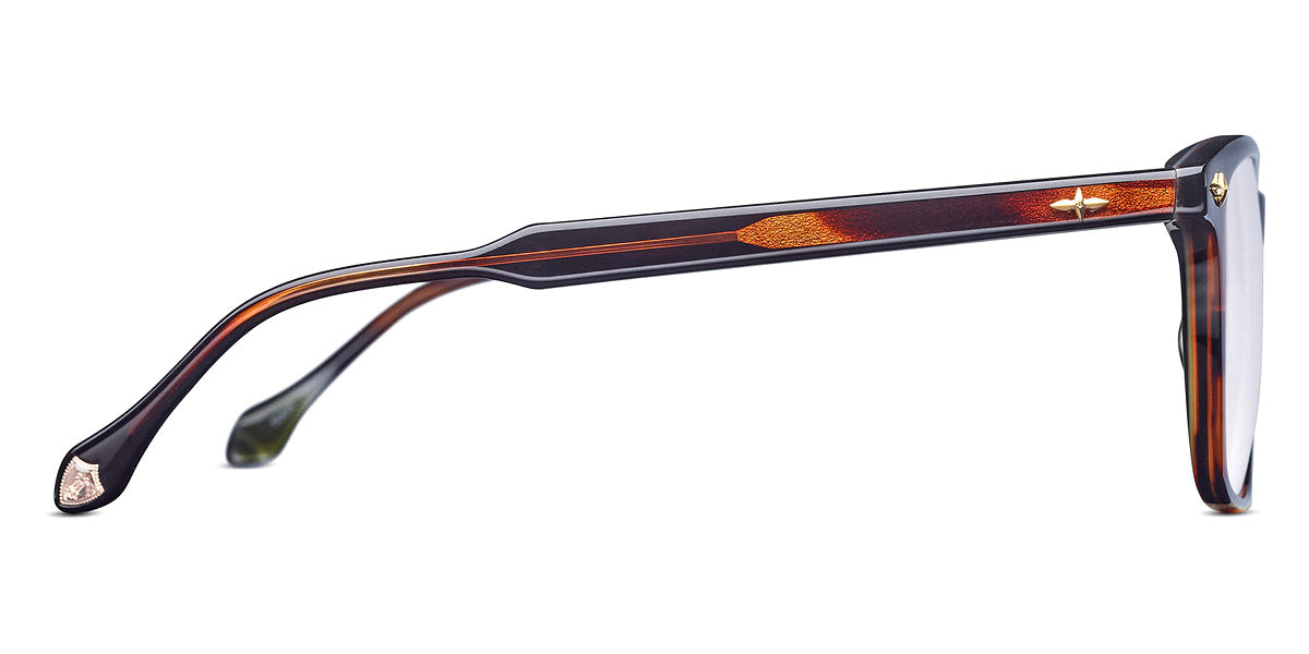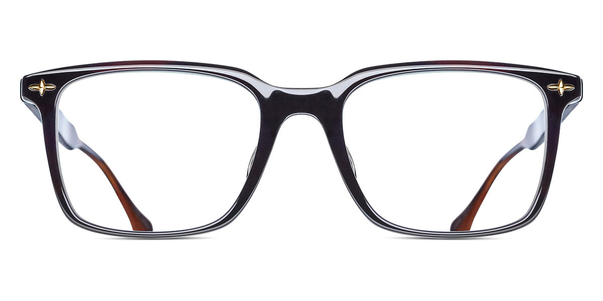 M1018 Eyeglasses by Matsuda. Color: Matte Black, Blue Demi, Crystal, Matte Half Demi, Tortoise Green, Size: 52-20-143, 54-20-143. The M1018 frame from Matsuda is a striking pair from the brand's Essential Collection. These glasses showcase Matsuda's dedication to innovation and modern design, while maintaining their commitment to artistry and craftsmanship. The frame is handcrafted in Japan from high-quality acetate for strength and flexibility. The square shape of the frame gives it a classic yet contemporary look, with a unique twist in the design that makes it stand out.