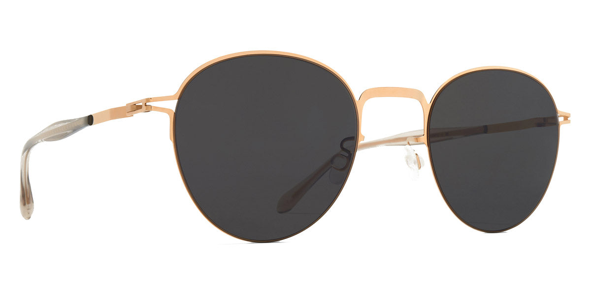 TATE Sunglasses by Mykita®. Color: Black / Polarized Pro Hi-Con Grey, Champagne Gold / Dark Grey Solid, Shiny Silver / Raw Green Solid, Size: 50-22-145. MYKITA glasses feature minimalist, elegant design, lightweight construction, and sophisticated details, which makes them perfect for people with a refined taste. There are no bold logos or any other luxury codes. Instead, much attention is paid to the construction, materials and surfaces. Each frame is an unbeatable mix of new technologies and traditional craftsmanship. All glasses are meticulously made of premium-grade stainless steel, acetate or MYLON by the most experienced artisans in Berlin.