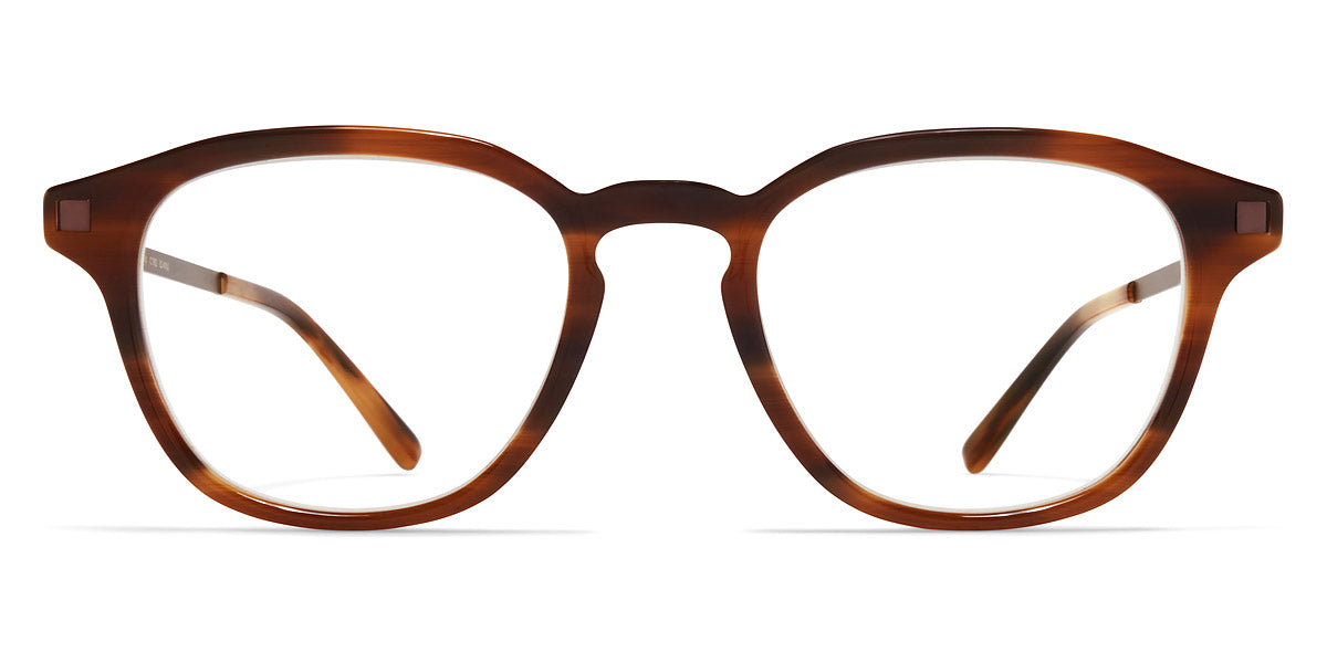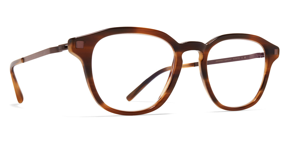 YURA Eyeglasses by Mykita®. Color: C161 Clear Ash/Champagne Gold, C175 Striped Brown/Mocca, C72 Limpid/Shiny Silver, C95 Black/Silver/Black, Size: 45-19-140. MYKITA glasses feature minimalist, elegant design, lightweight construction, and sophisticated details, which makes them perfect for people with a refined taste. There are no bold logos or any other luxury codes. Instead, much attention is paid to the construction, materials and surfaces. Each frame is an unbeatable mix of new technologies and traditional craftsmanship. All glasses are meticulously made of premium-grade stainless steel, acetate or MYLON by the most experienced artisans in Berlin.
