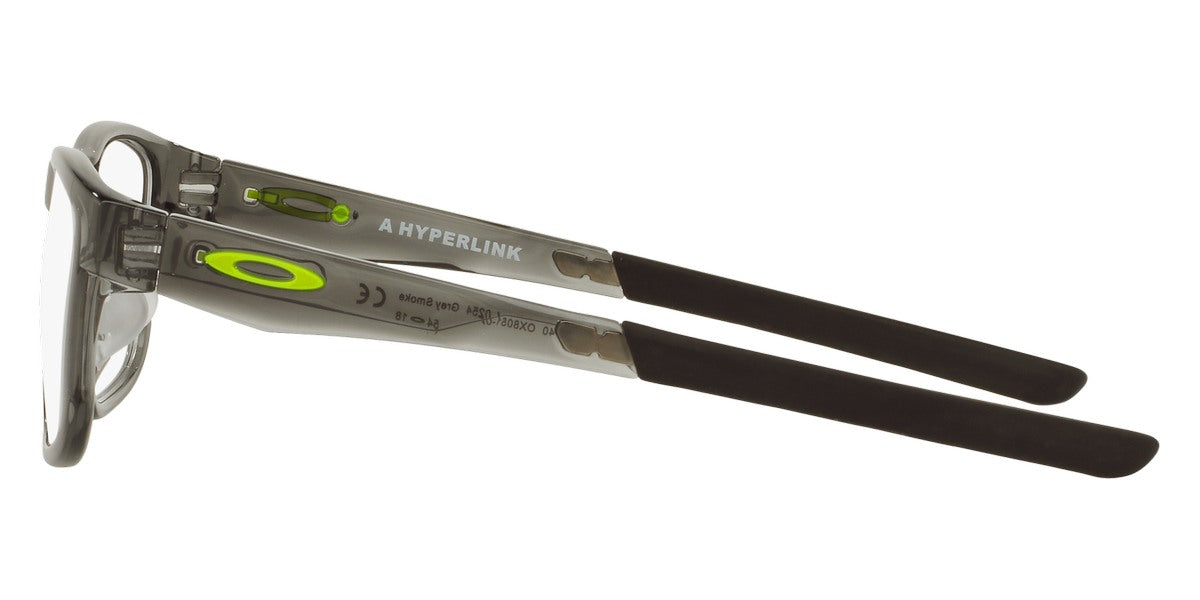 Hyperlink (A) Eyeglasses by Oakley. Color: Gray Smoke,Satin Black,Satin Gray Smoke, Size: 54-18-140, Shape: Square. From casual optical styles to modern sporty shades in bright colors, the Oakley glasses feature unique design, patented technologies and exceptional fit. Born to push the boundaries of form and function, the frame is made from the lightweight, stress-resistant O Matter™ material that ensures durability and all-day comfort. The Three-Point Fit holds lenses in precise optical alignment while the Unobtainium® ear socks provide a no-slip grip. When it comes to lenses, they’re tested under extreme high mass and high velocity circumstances to ensure uncompromising protection across a wide range of demanding conditions. Featuring a go-anywhere design, these Oakley glasses are just perfect for those who take a straightforward approach to original style.