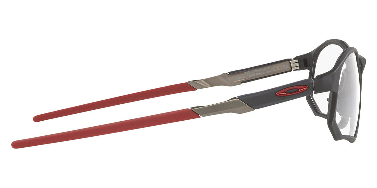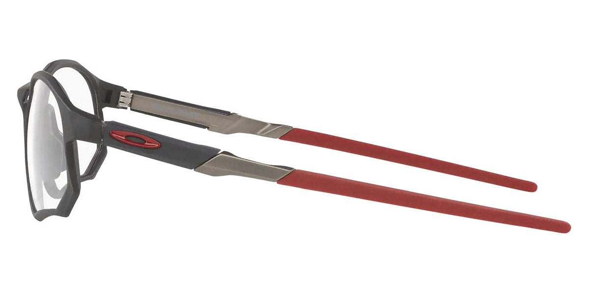 The Oakley Trajectory (OX8171) is a performance-driven optical frame with a bold sporty edge. It features a wraparound 6-base geometry to provide broad coverage and retain optical clarity. The front is built in NanO-Matter™, while the temples use thin titanium cores for strength and adjustability. Comfort and fit are enhanced with TruBridge™ Unobtainium® nosepads and earsocks, which grip better with perspiration and help keep the frame stable in motion.