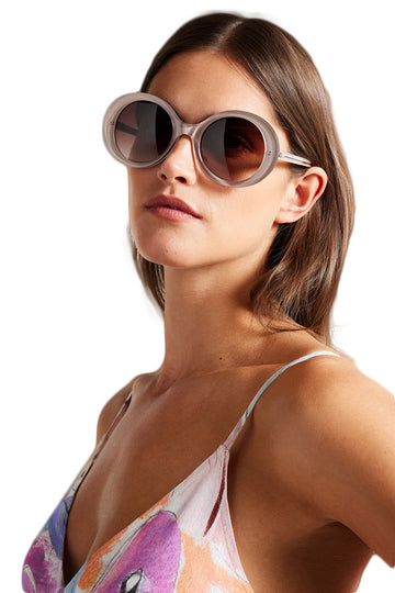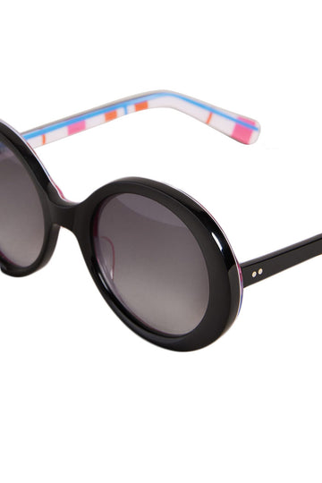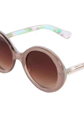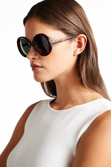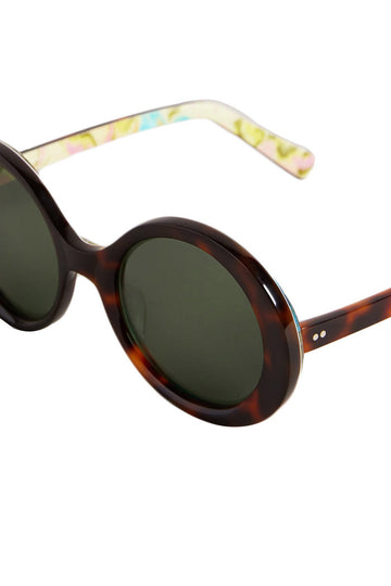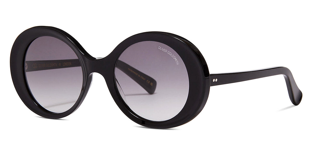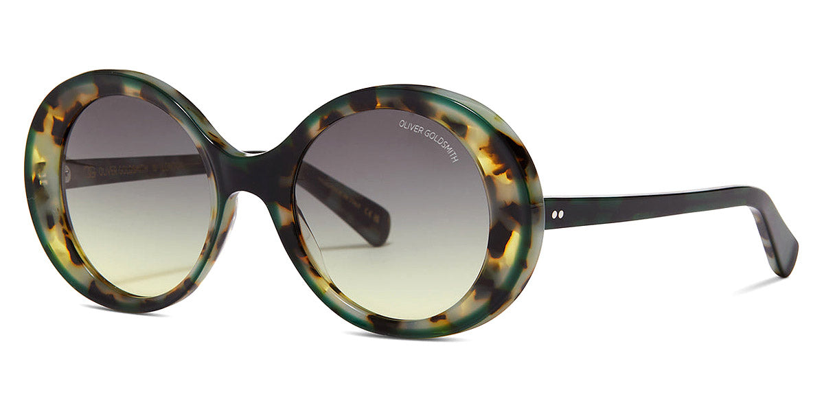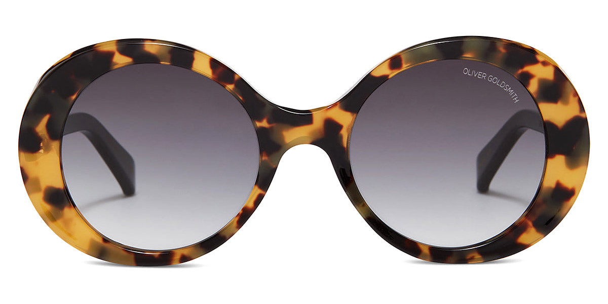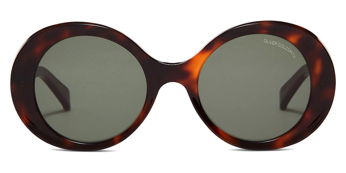 1960'S Sunglasses by Oliver Goldsmith & Ted Baker. Color: Tortoise, Black, Pink, Basalt, Black, Earth Tortoise, Kelp, Leopard on Night Sea, Pink Champagne, Size 52-21-140. These totally unique and wonderfully distinctive sunglasses remain one of the most striking frames in the OG collection. The SIXTIES features an oversized round frame that wraps beautifully around the face. Handmade in Italy using the finest cotton acetate and premium grade UVA/UVB sun lenses, the SIXTIES is an enduring timepiece of design.