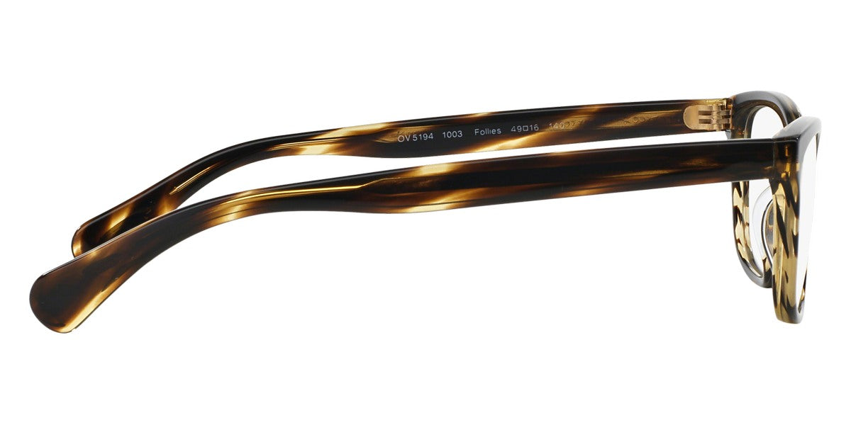 Follies by Oliver Peoples. Color: Cocobolo, Tortoise/Cream, Washed Teal, Deep Burgundy, Size: 51-16-140. Oliver Peoples glasses are unique, retro-inspired silhouettes with the ingenious spirit of Los Angeles. Each frame is a real work-of-art that demonstrates thoughtfulness in design and perfection in craft. Recognized by their meticulous attention to detail, Oliver Peoples creates stunning optical frames and sunglasses with intricate filigree accents and exquisite decorations. To create durable lenses with enhanced visual clarity, Oliver Peoples collaborates with Barberini®, the renowned lens producer. The result is a perfect combination of high-performance optical technology with timeless, yet advanced design.
