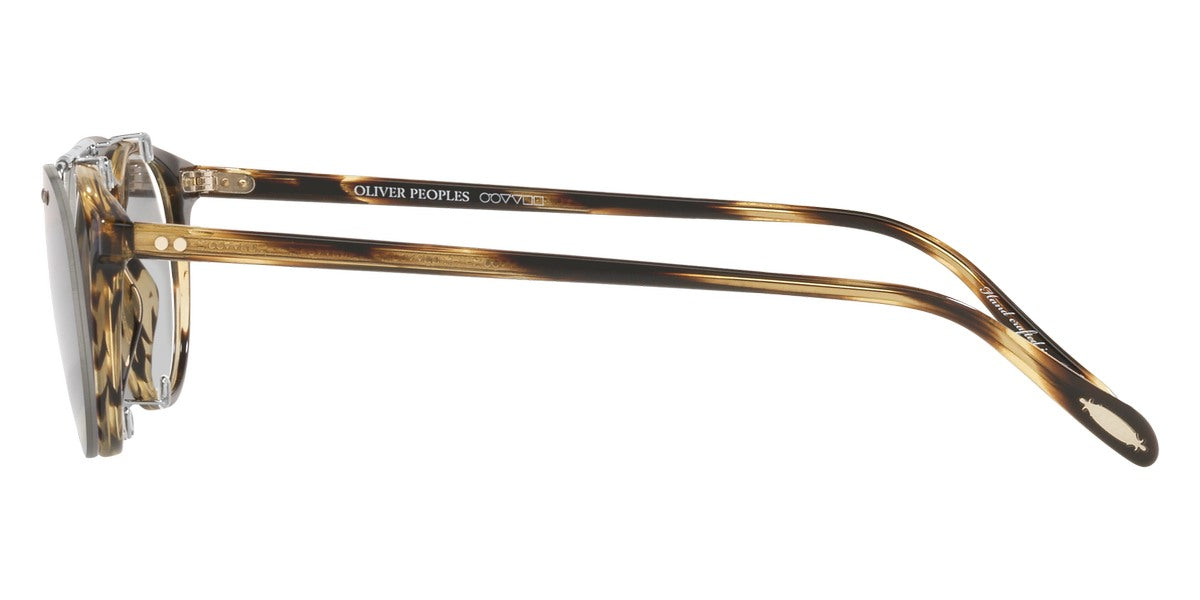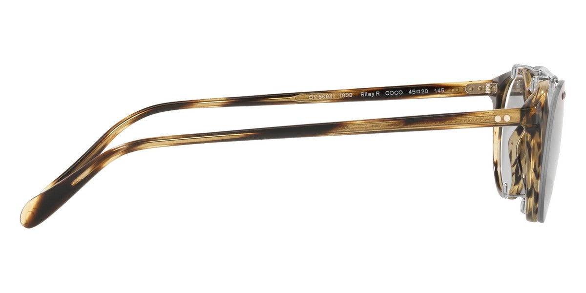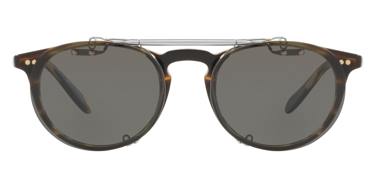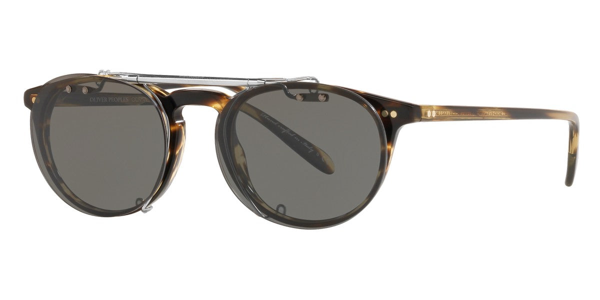Riley-R Flip-Up Clip by Oliver Peoples. Color: Antique Pewter, Brushed Gold, Size: 45-00, 47-00, 49-00. Oliver Peoples glasses are unique, retro-inspired silhouettes with the ingenious spirit of Los Angeles. Each frame is a real work-of-art that demonstrates thoughtfulness in design and perfection in craft. Recognized by their meticulous attention to detail, Oliver Peoples creates stunning optical frames and sunglasses with intricate filigree accents and exquisite decorations. To create durable lenses with enhanced visual clarity, Oliver Peoples collaborates with Barberini®, the renowned lens producer. The result is a perfect combination of high-performance optical technology with timeless, yet advanced design.