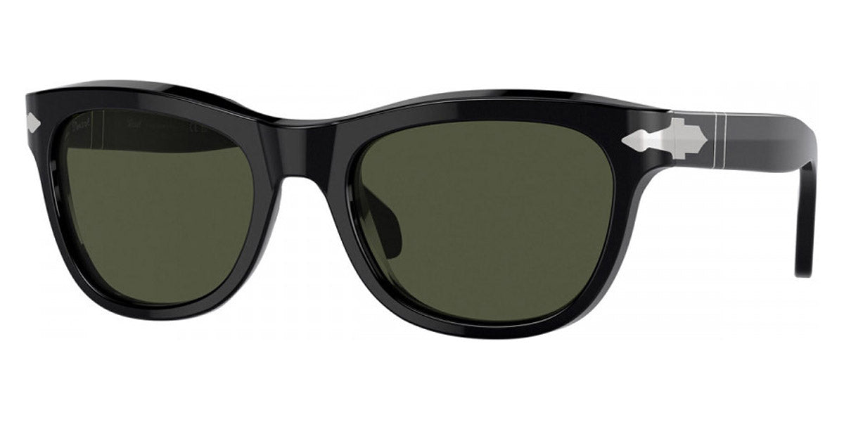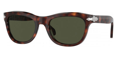PO0086S Sunglasses by Persol. Shape: Square, Material: Acetate, Frame Type: Full Rim, Color: 24/31 Havana / Green, 24/57 Havana / Polarized Brown, 95/31 Black / Green, 95/4E Black / Green, 95/53 Black / Yellow Brown, 95/56 Black / Blue, 95/H2 Black / Brown, Size: 54-20-145, 57-20-145.