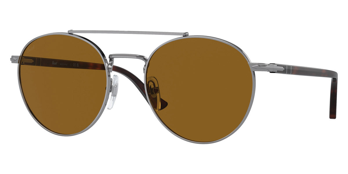 PO1011S Sunglasses by Persol. Shape: Square, Material: Metal and Acetate, Frame Type: Full Rim, Color: 107831 Black / Green, 513/33 Gunmetal / Brown, Size: 52-20-145, 54-20-145.