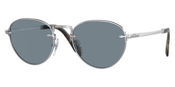 PO2491S Sunglasses by Persol. Shape: Phantos, Material: Steel, Frame Type: Full Rim, Color: 112256 Silver / Light Blue, Size: 51-20-145.
