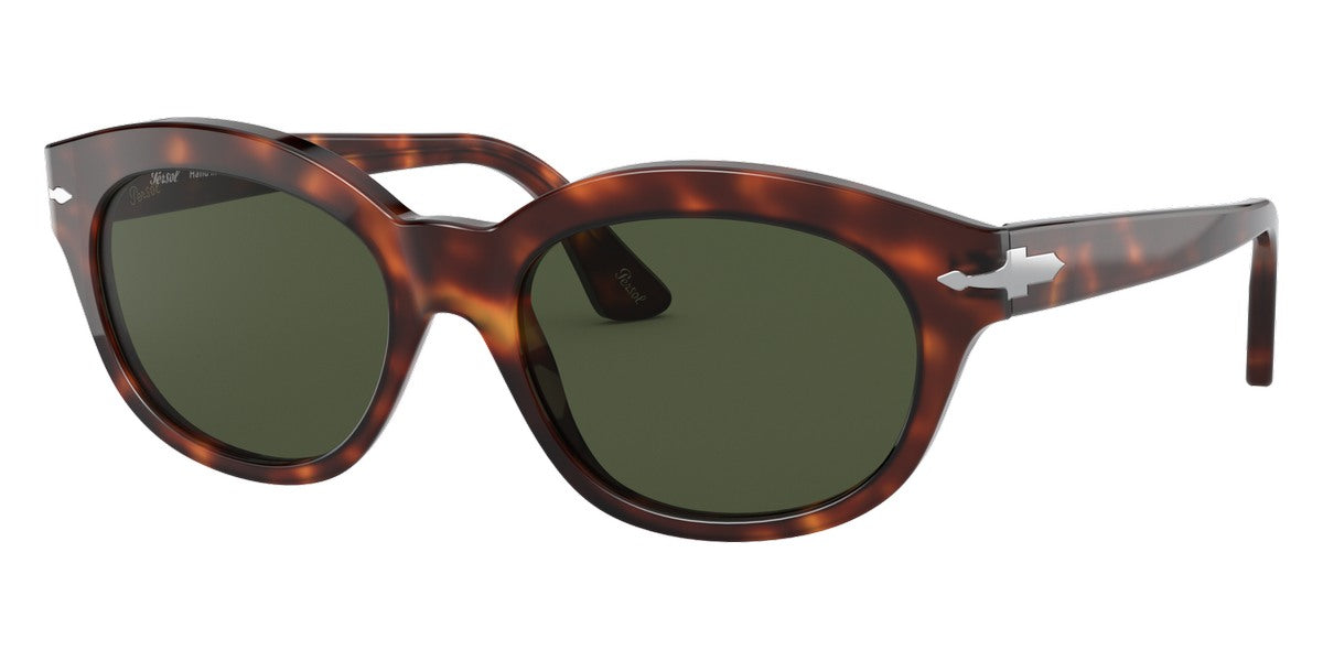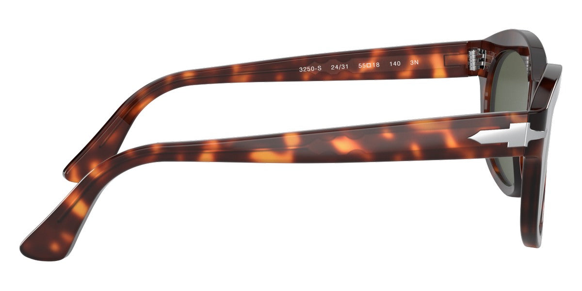 PO3250S Sunglasses by Persol. Shape: Square, Material: Plastic, Color: Black, Brown Tortoise, Caffe', Havana, Terra Di Siena, Size: 55-18-140. Each pair of Persol glasses is a perfect symbiosis of technology and aesthetics. The fascinating design and artistic quality of Persol glasses make them a premier choice among celebrities. The keyhole bridge, legendary arrow and Meflecto system are the details that have made Persol eyewear unmatchable. Patented in the ‘30s, the Meflecto is the first flexible stem system designed for maximum comfort of the wearer allowing glasses to adapt to any face shape. Also, Persol glasses are paired with the Barberini® mineral sun lenses that feature the best anti-impact, anti-static and anti-scratch technology.