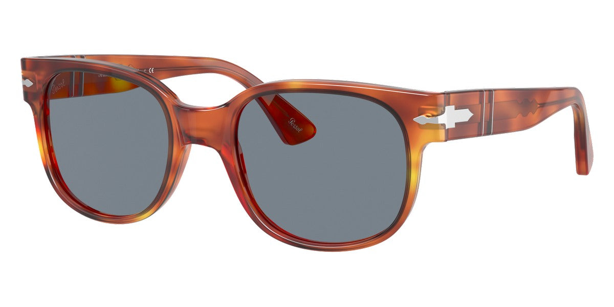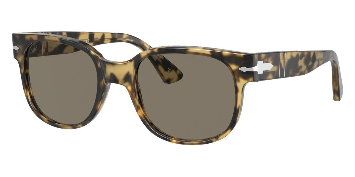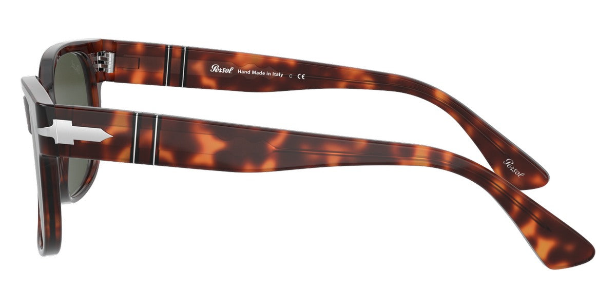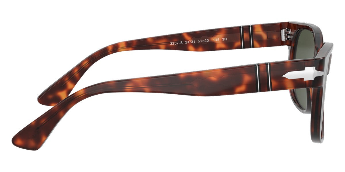 PO3257S Sunglasses by Persol. Shape: Square, Material: Plastic, Frame Type: Full Rim, Color: Brown/Beige Tortoise, Havana, 95/31 Black / Green, Terra Di Siena, 1056B1 Grey Tortoise / Grey, Size: 51-20-145.