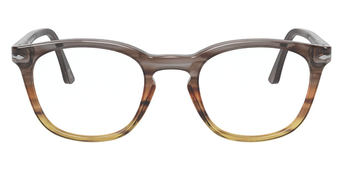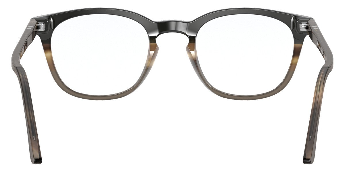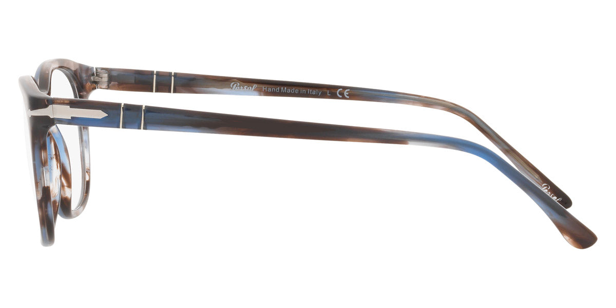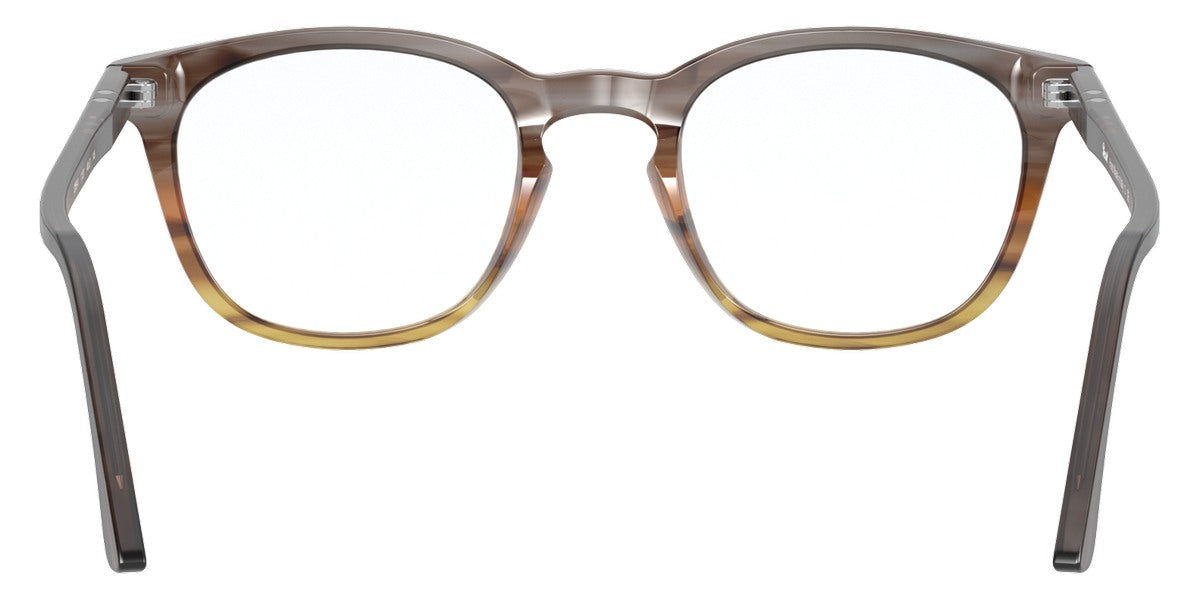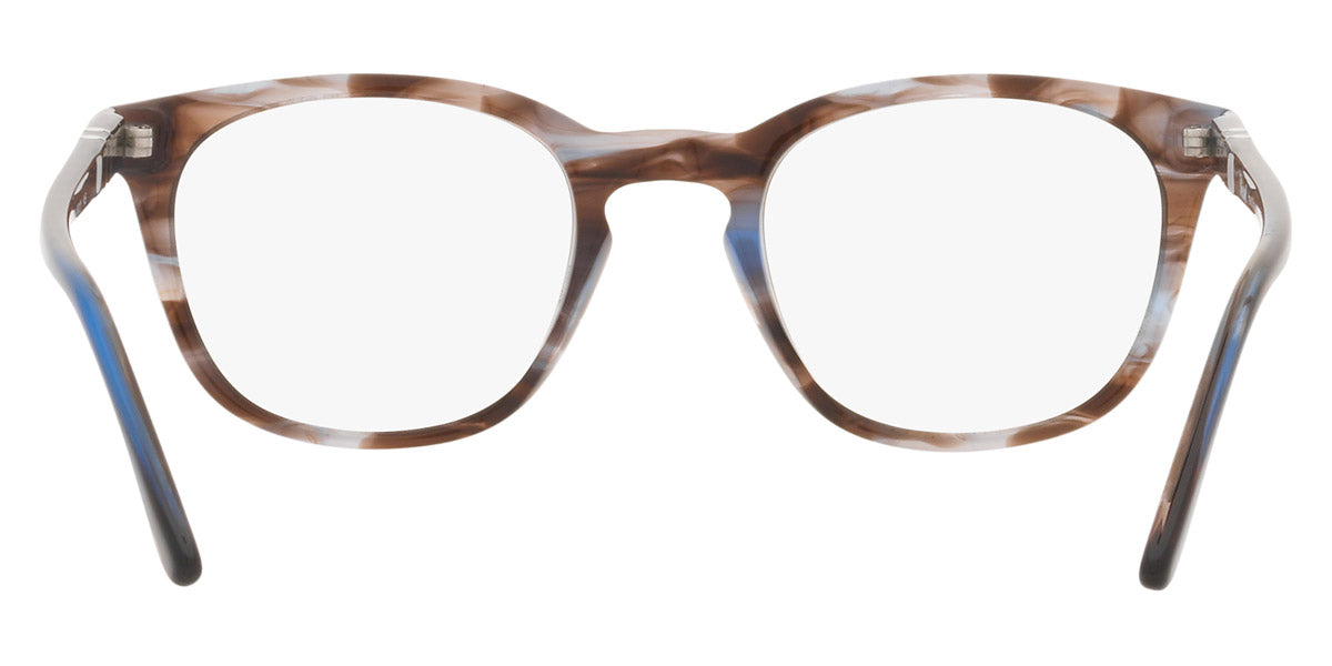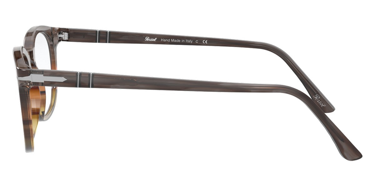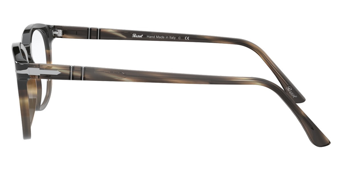 PO3258V Eyeglasses by Persol. Shape: Wayfarer, Material: Plastic, Frame Type: Full Rim, Color: Striped Brown/Gray/Black, Striped Gray/Gradient Brown, Havana, Black, 1155 Striped Blue, Size: 48-21-145.