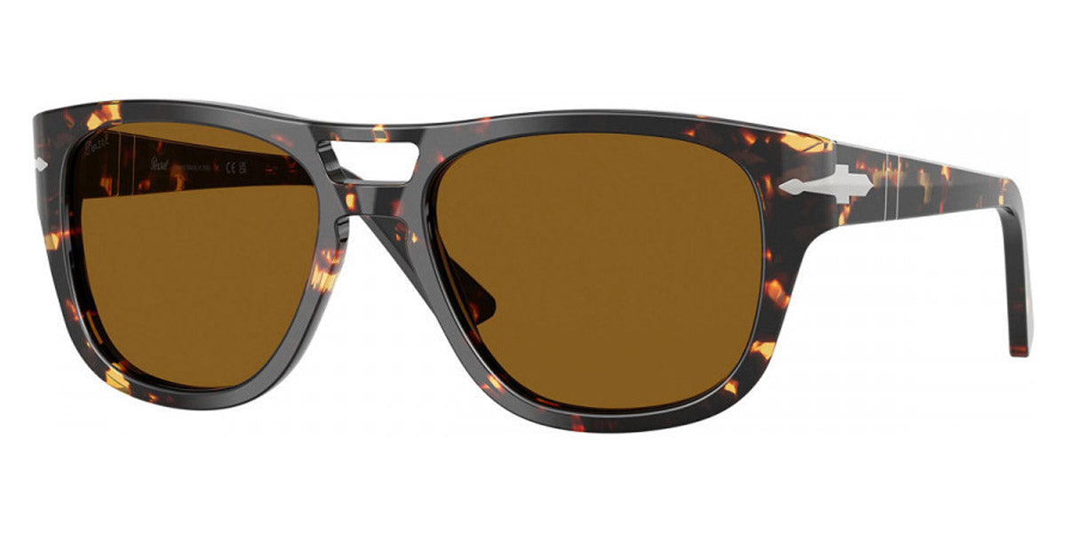 PO3366S Sunglasses by Persol. Shape: Square, Material: Acetate, Frame Type: Full Rim, Color: 105648 Brown Beige Tortoise / Polar Black, 204/S3 Miele / Light Blue Gradient Dark Blue, 24/B1 Havana / Dark Grey, 95/31 Black / Green, 96/56 Terra Di Siena / Blue, 96/Gj Terra Di Siena / Transitions 8 Green, 985/33 Tabacco Virginia / Brown, Size: 55-18-145, 58-18-145.