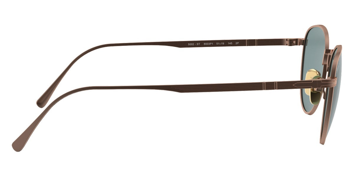PO5002ST Sunglasses by Persol. Shape: Wayfarer, Material: Titanium, Frame Type: Full Rim, Color: Bronze, Brushed Navy, Gold, Matte Black, Pewter, Size: 51-19-145. Each pair of Persol glasses is a perfect symbiosis of technology and aesthetics. The fascinating design and artistic quality of Persol glasses make them a premier choice among celebrities. The keyhole bridge, legendary arrow and Meflecto system are the details that have made Persol eyewear unmatchable. Patented in the ‘30s, the Meflecto is the first flexible stem system designed for maximum comfort of the wearer allowing glasses to adapt to any face shape. Also, Persol glasses are paired with the Barberini® mineral sun lenses that feature the best anti-impact, anti-static and anti-scratch technology.