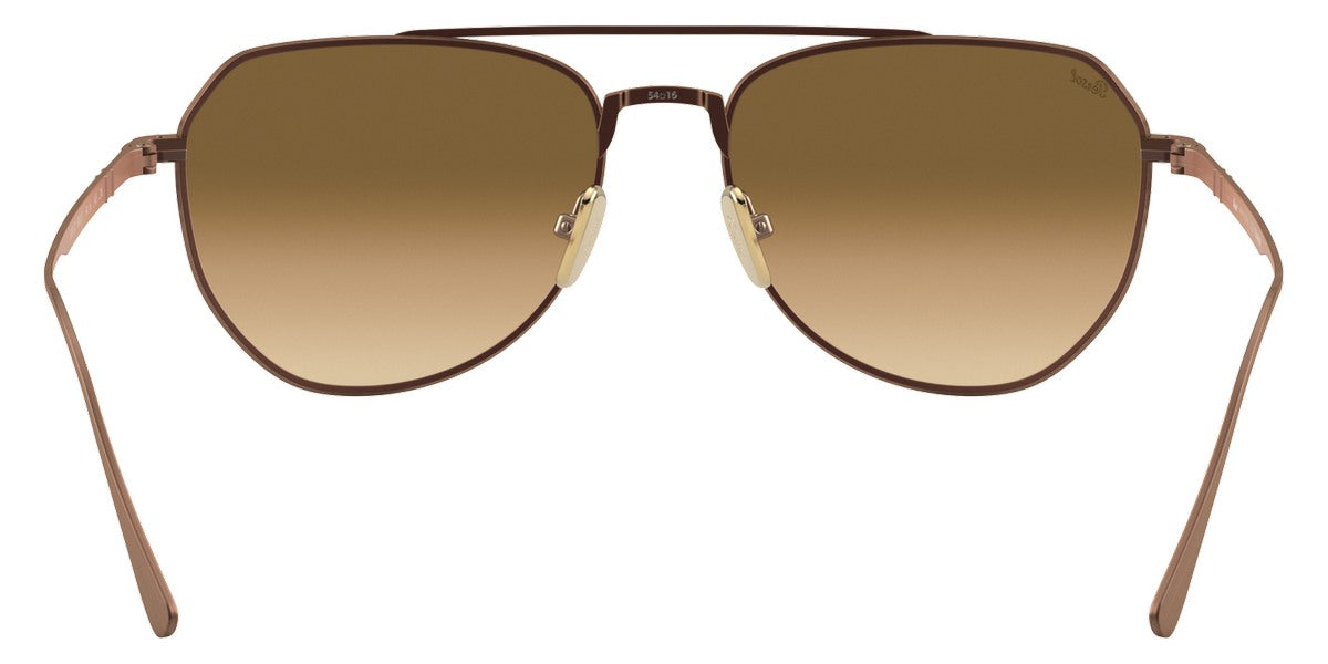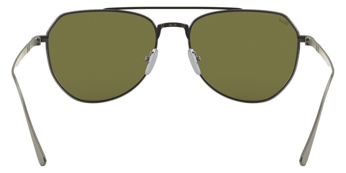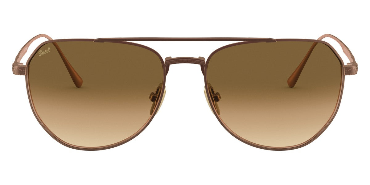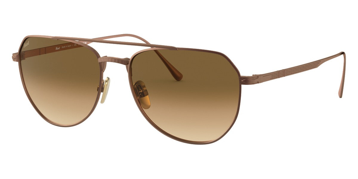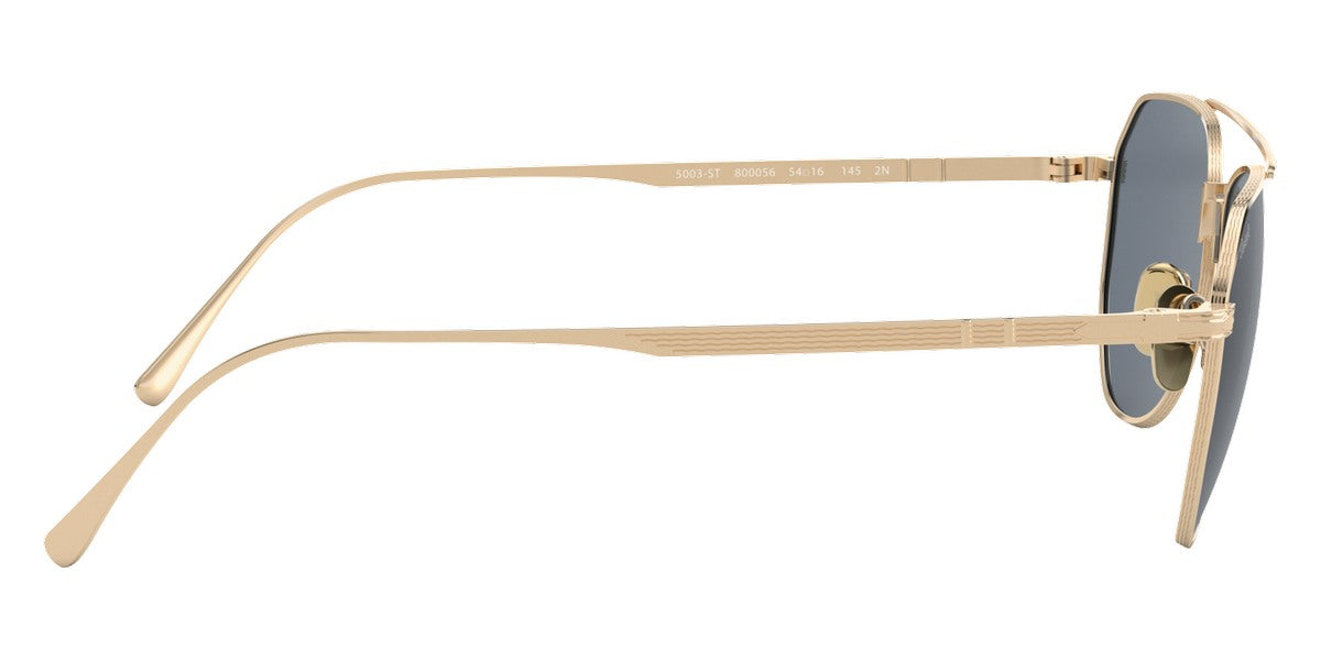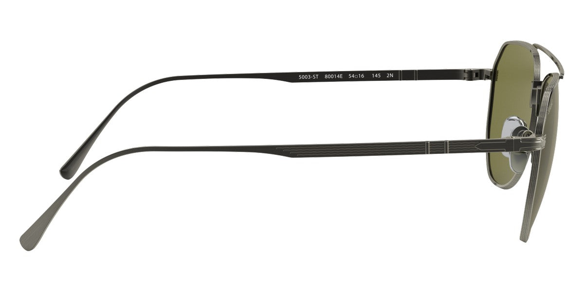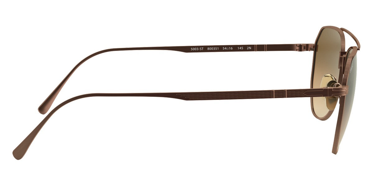 PO5003ST Sunglasses by Persol. Shape: Wayfarer, Material: Titanium, Frame Type: Full Rim, Color: Bronze, Brushed Navy, Gold, Matte Black, Pewter, Size: 54-16-145. Each pair of Persol glasses is a perfect symbiosis of technology and aesthetics. The fascinating design and artistic quality of Persol glasses make them a premier choice among celebrities. The keyhole bridge, legendary arrow and Meflecto system are the details that have made Persol eyewear unmatchable. Patented in the ‘30s, the Meflecto is the first flexible stem system designed for maximum comfort of the wearer allowing glasses to adapt to any face shape. Also, Persol glasses are paired with the Barberini® mineral sun lenses that feature the best anti-impact, anti-static and anti-scratch technology.