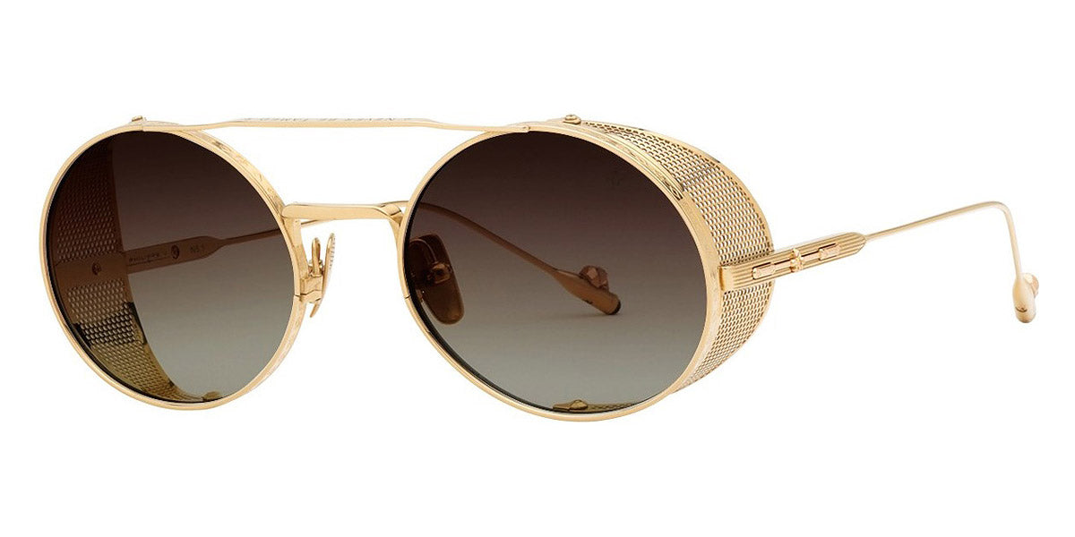 No5.1 Sunglasses by Philippe V. Color: Black Matte/Gray Gradient, Gold/Brown Gold, Gold/Brown Gradient, Silver/Blue Silver, Silver/Gray, Size: 55-20-150. Philippe V eyewear is the epitome of craftsmanship and attention to detail. Each pair of glasses is expertly crafted from the finest materials and finished to perfection, ensuring an unparalleled level of quality. While lightweight for optimal comfort, the frame is built to withstand the rigors of life, making it both durable and stylish. In addition to an ultra-stylish silhouette, the frame features unique hidden details that add an extra layer of elegance and sophistication.