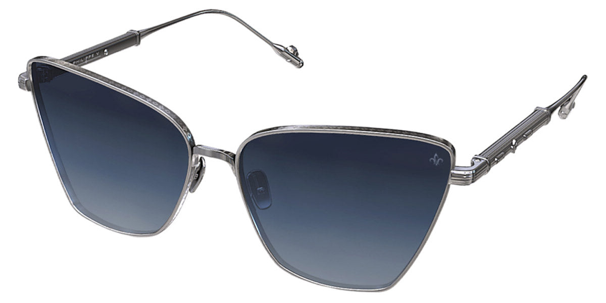WNo22 Sunglasses by Philippe V. Color: Gold, Silver, Size: 61-15-145. Philippe V eyewear is the epitome of craftsmanship and attention to detail. Each pair of glasses is expertly crafted from the finest materials and finished to perfection, ensuring an unparalleled level of quality. While lightweight for optimal comfort, the frame is built to withstand the rigors of life, making it both durable and stylish. In addition to an ultra-stylish silhouette, the frame features unique hidden details that add an extra layer of elegance and sophistication.
