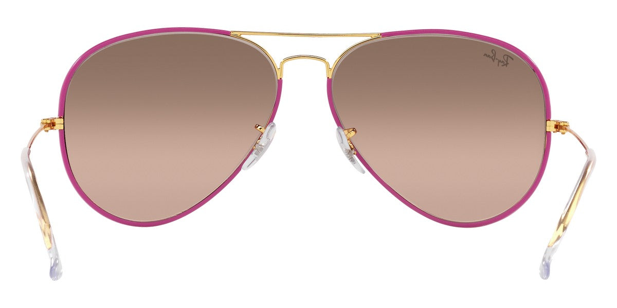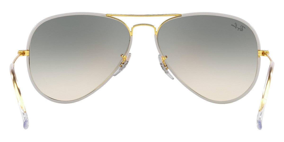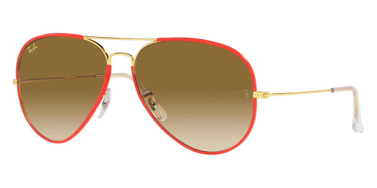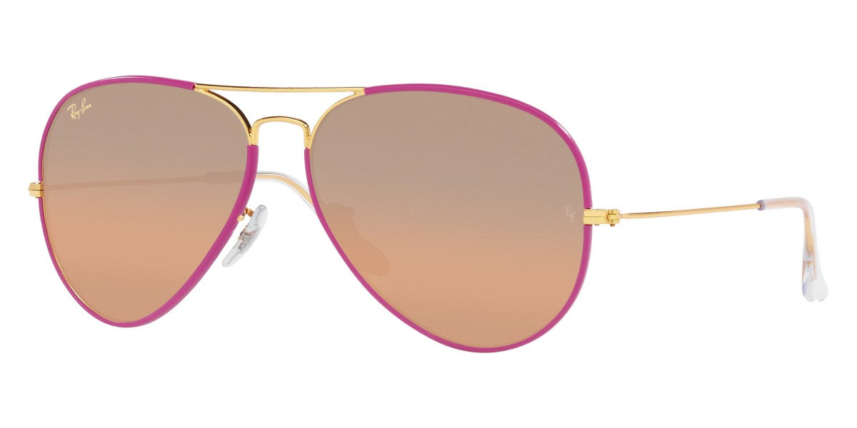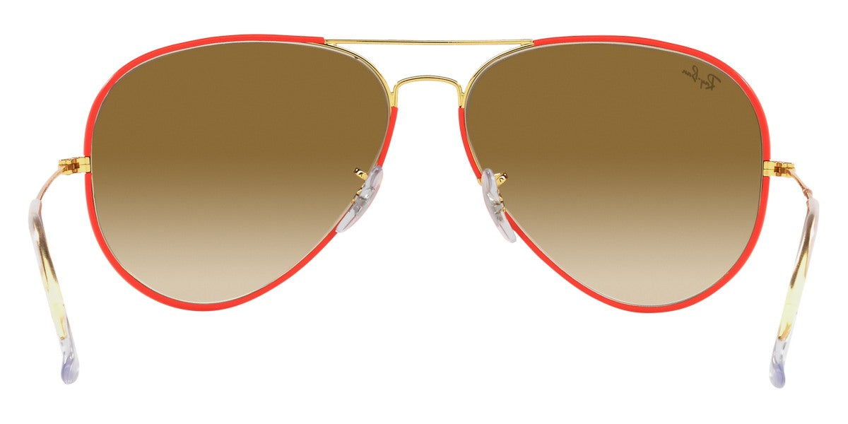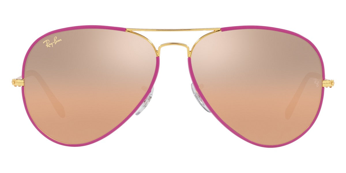 Aviator Full Color RB3025Jm Sunglasses by Ray-Ban. Color: Legend Gold, Size: 58-14-135, 62-14-140. The originator of the iconic eyewear pieces, Ray-Ban is synonymous with cool, hip and freedom of expression. The glasses feature a distinctive frame with strong character and modern appearance. Utilizing premium-grade, bio-based materials and latest technologies, Ray-Ban creates extremely comfortable spectacles with a perfect fit. The Ray-Ban sunglasses are equipped with high-end polarized lenses that block glare for improved clarity and contrast, while also offering 100% UVA and UVB protection to shield your eyes from the sun's rays.