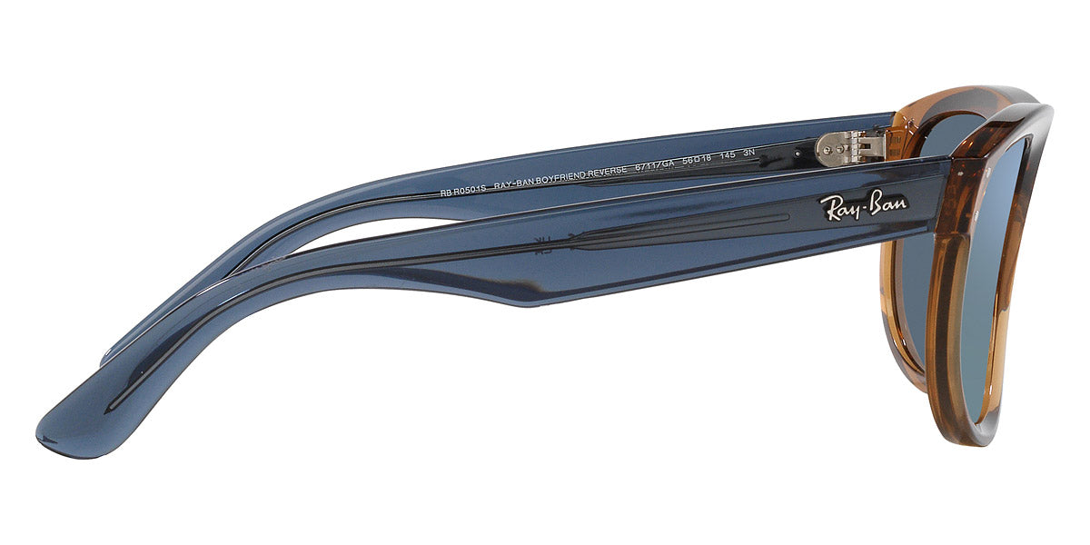 Boyfriend Reverse RBr0501S Sunglasses by Ray-Ban. Color: Brown, Black, Blue, Size: 56-18-145. The originator of the iconic eyewear pieces, Ray-Ban is synonymous with cool, hip and freedom of expression. The glasses feature a distinctive frame with strong character and modern appearance. Utilizing premium-grade, bio-based materials and latest technologies, Ray-Ban creates extremely comfortable spectacles with a perfect fit. The Ray-Ban sunglasses are equipped with high-end polarized lenses that block glare for improved clarity and contrast, while also offering 100% UVA and UVB protection to shield your eyes from the sun's rays.