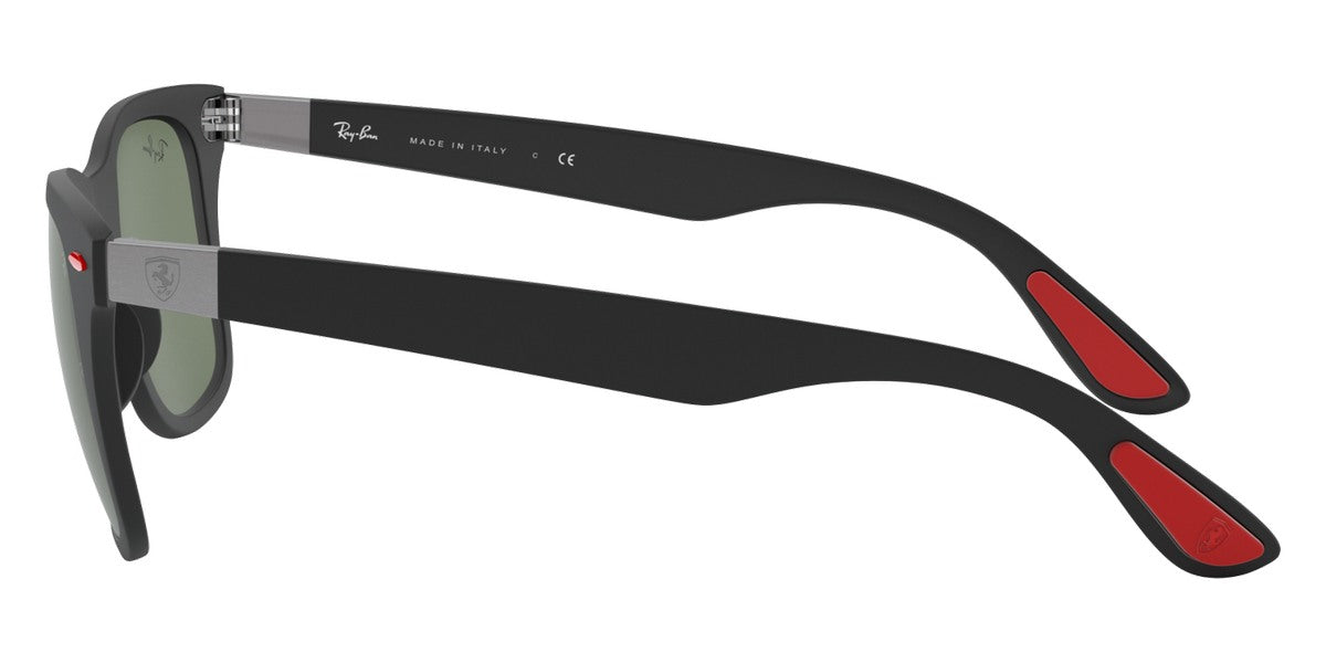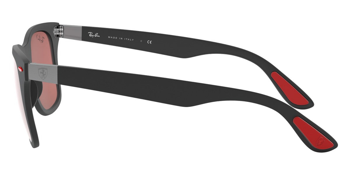 Ferrari RB4195Mf Sunglasses by Ray-Ban. Color: Matte Black, Size: 52-20-150. The originator of the iconic eyewear pieces, Ray-Ban is synonymous with cool, hip and freedom of expression. The glasses feature a distinctive frame with strong character and modern appearance. Utilizing premium-grade, bio-based materials and latest technologies, Ray-Ban creates extremely comfortable spectacles with a perfect fit. The Ray-Ban sunglasses are equipped with high-end polarized lenses that block glare for improved clarity and contrast, while also offering 100% UVA and UVB protection to shield your eyes from the sun's rays.