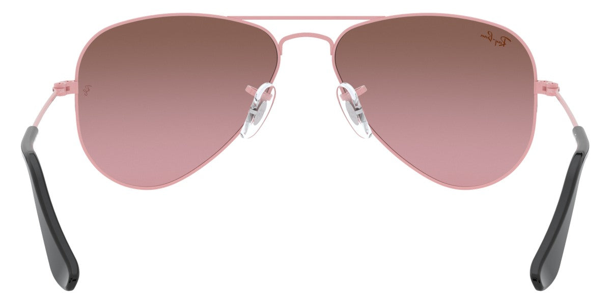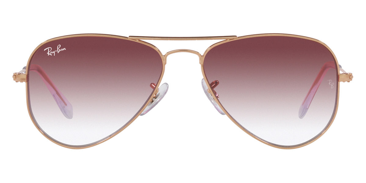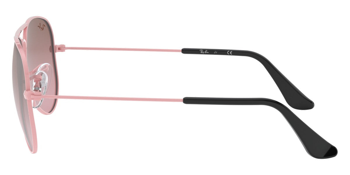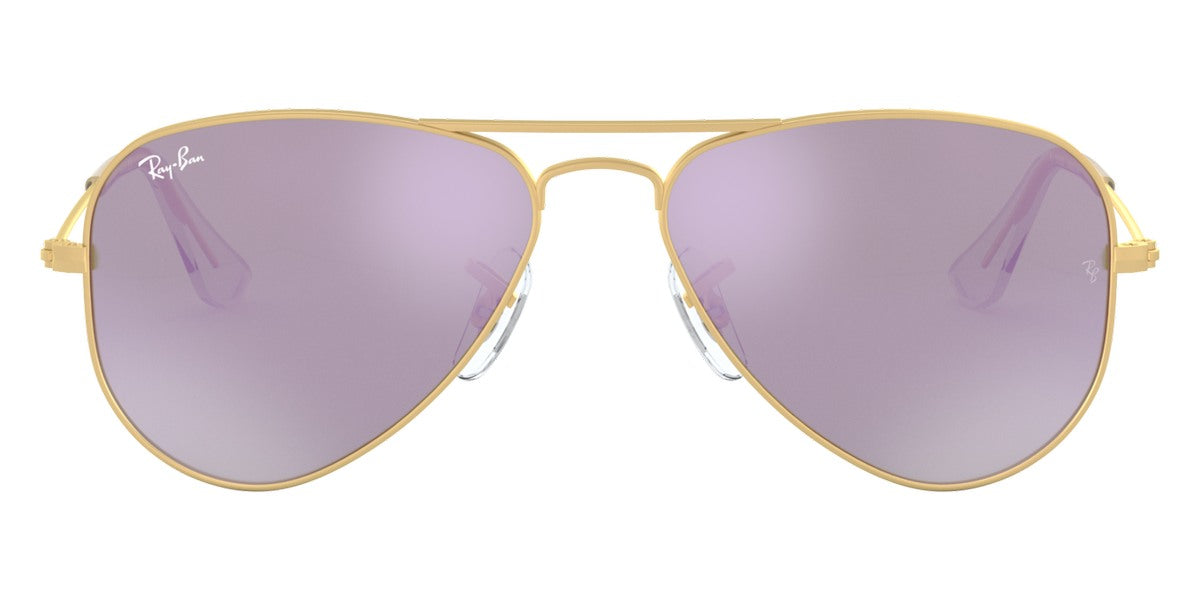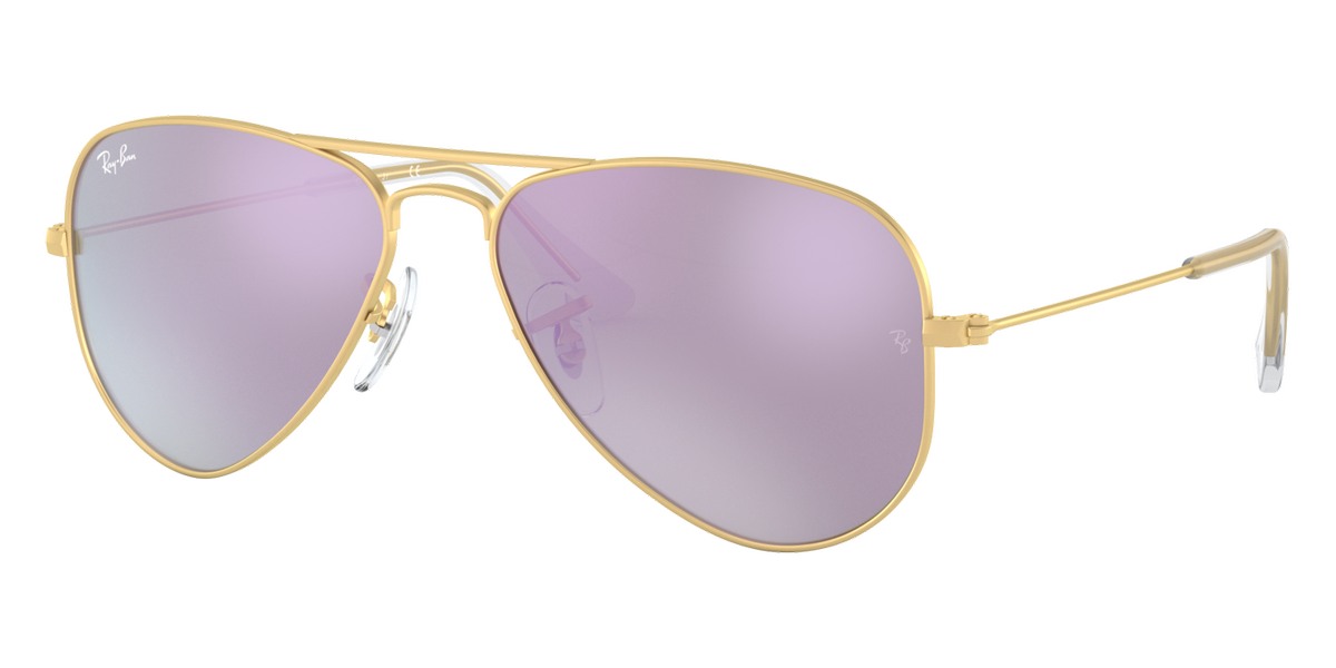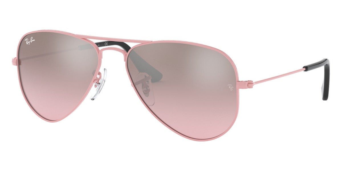 Junior Aviator RJ9506S Sunglasses by Ray-Ban. Color: Silver, Black, Pink, Gold, Size: 50-13-120. The originator of the iconic eyewear pieces, Ray-Ban is synonymous with cool, hip and freedom of expression. The glasses feature a distinctive frame with strong character and modern appearance. Utilizing premium-grade, bio-based materials and latest technologies, Ray-Ban creates extremely comfortable spectacles with a perfect fit. The Ray-Ban sunglasses are equipped with high-end polarized lenses that block glare for improved clarity and contrast, while also offering 100% UVA and UVB protection to shield your eyes from the sun's rays.