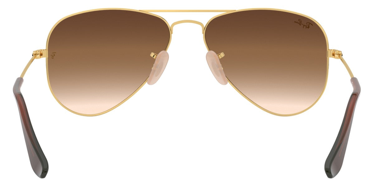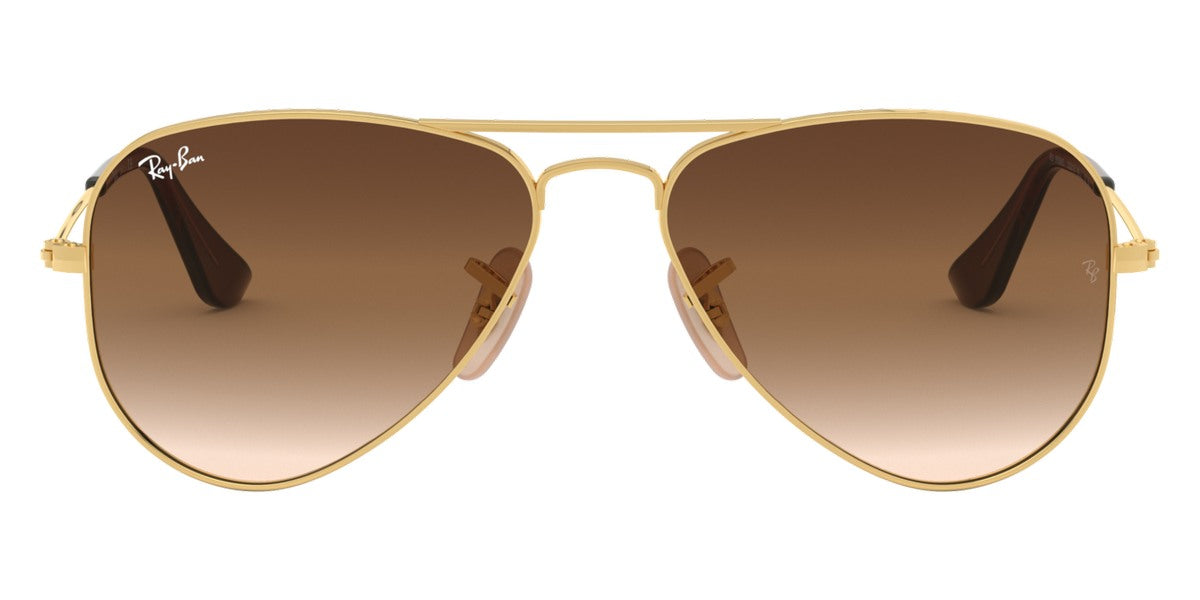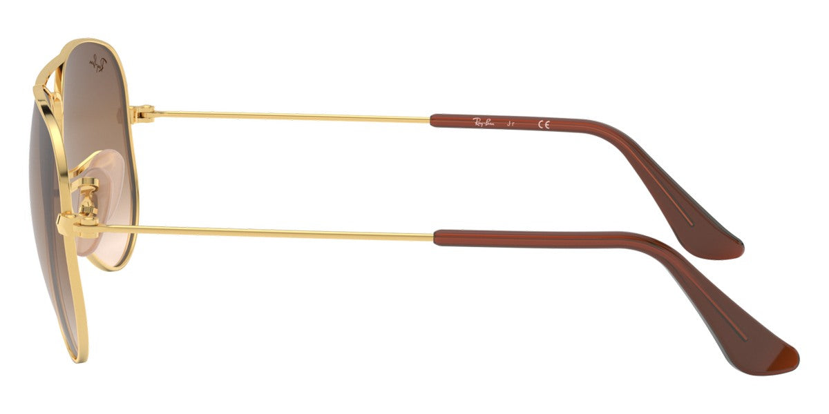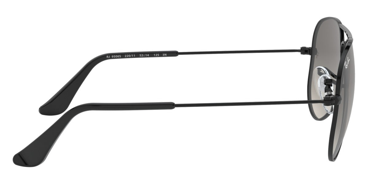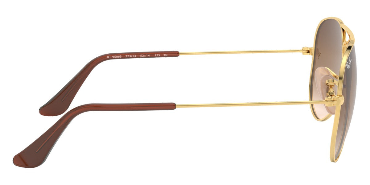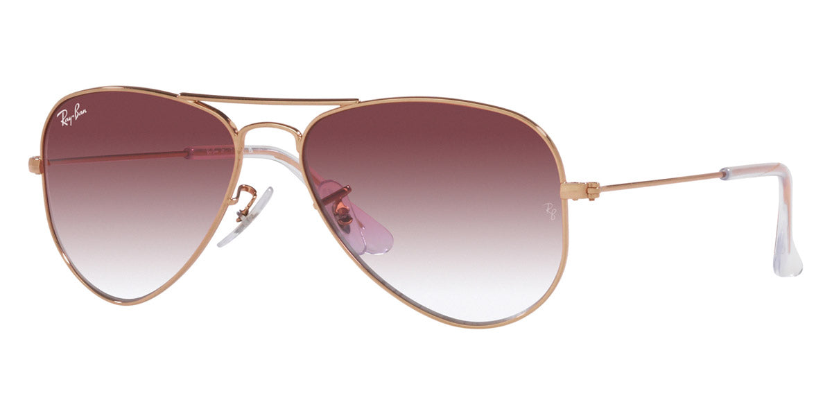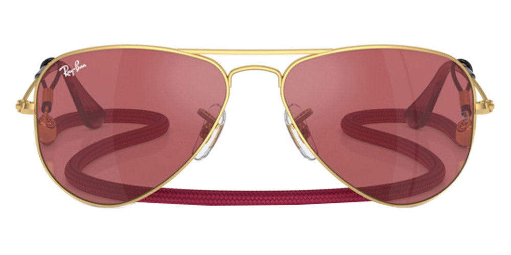 Junior Aviator RJ9506S Sunglasses by Ray-Ban. Color: Silver, Black, Pink, Gold, Size: 50-13-120. The originator of the iconic eyewear pieces, Ray-Ban is synonymous with cool, hip and freedom of expression. The glasses feature a distinctive frame with strong character and modern appearance. Utilizing premium-grade, bio-based materials and latest technologies, Ray-Ban creates extremely comfortable spectacles with a perfect fit. The Ray-Ban sunglasses are equipped with high-end polarized lenses that block glare for improved clarity and contrast, while also offering 100% UVA and UVB protection to shield your eyes from the sun's rays.