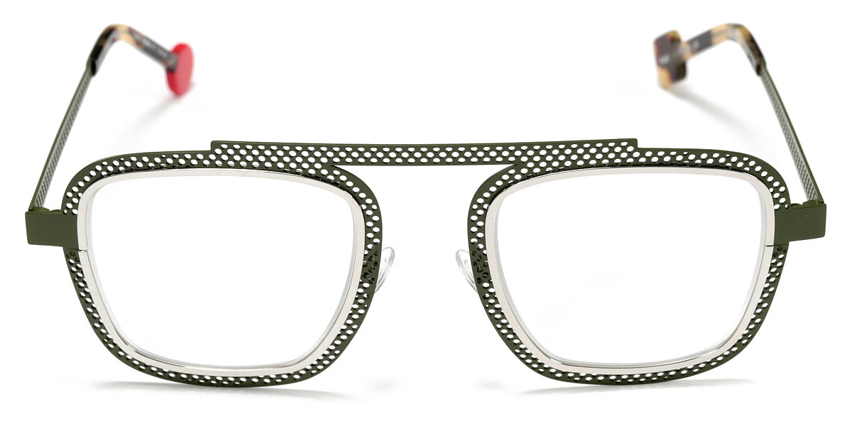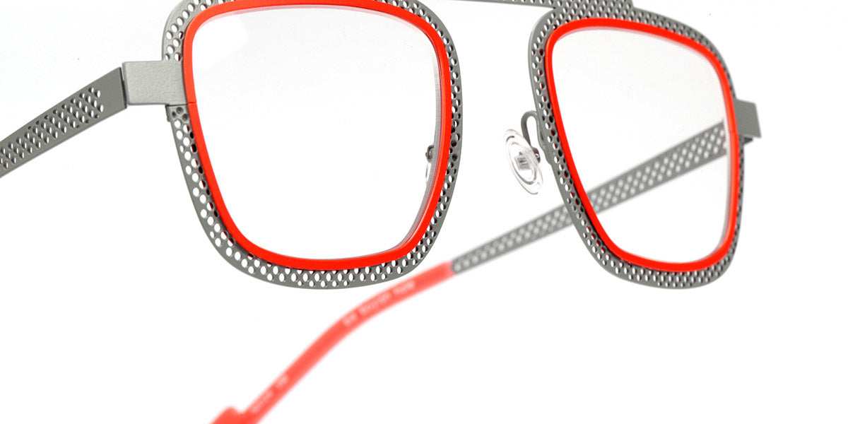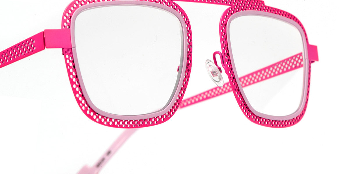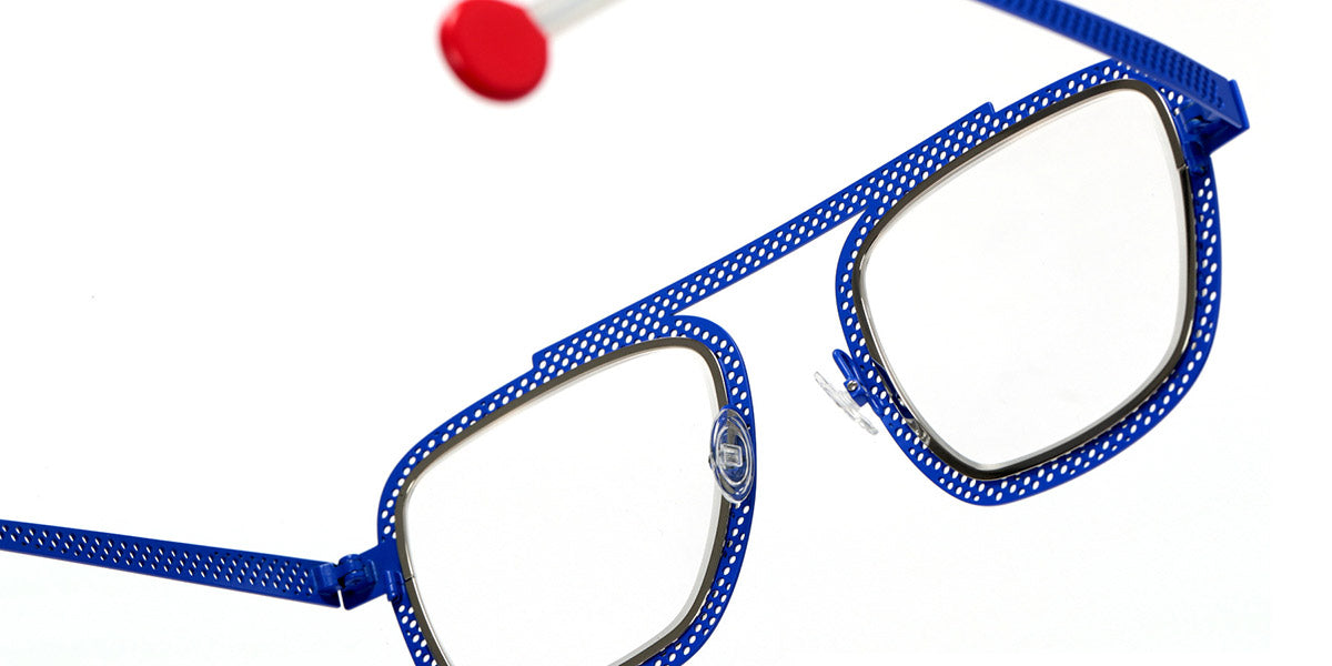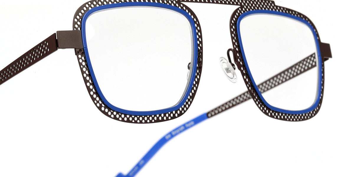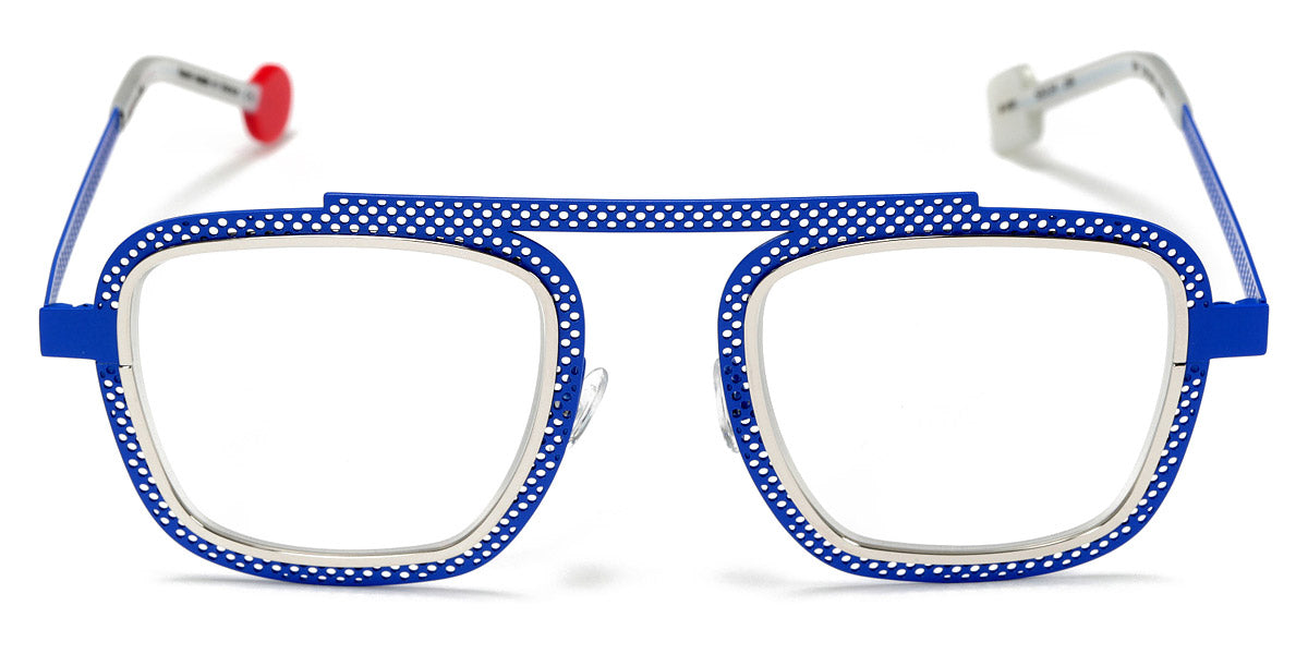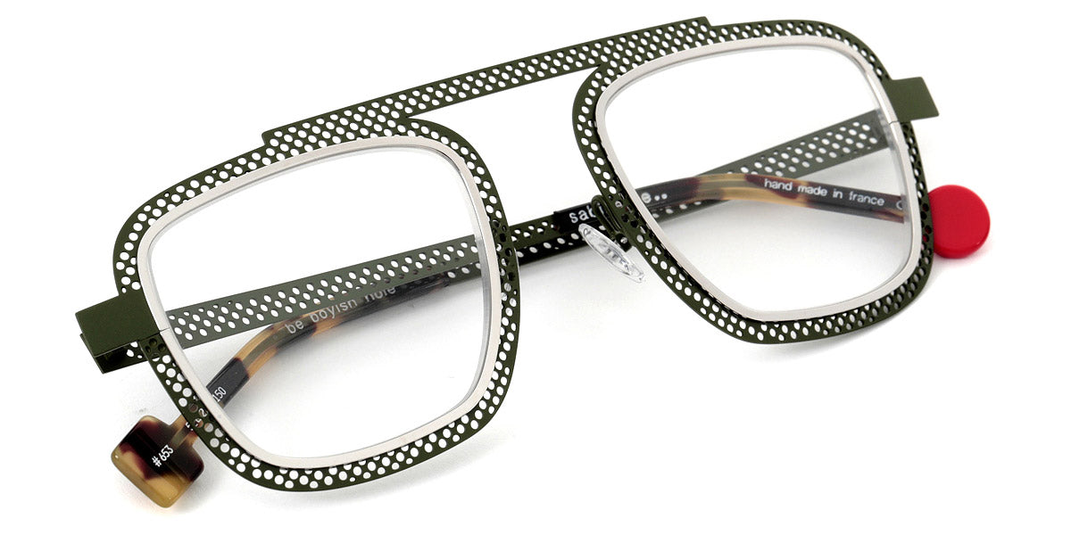 Be Boyish Hole Eyeglasses by Sabine Be. Color: Majorelle Blue Perforated Satin / Polished Palladium, Khaki Satin Perforated / Polished Palladium, Pale Yellow Gold Polished Perforated / Shiny Black, Perforated Satin Gray / Neon Orange Satin, Perforated Polished Palladium / Satin Pastel Blue, Neon Pink Perforated Satin / Pastel Pink Satin, Dark Chocolate Satin Perforated / Blue Majorelle Satin, Glossy Black Perforated / Polished Rose Gold, Size: 52-24-150. Bold, mesmerizing, playful and totally unique! Whichever word you use, it will perfectly describe Sabine Be eyewear. Amazing designs and bright colors make these glasses a perfect tool to reflect your inner world and fill your life with joy and beauty. Each frame is handmade in France utilizing premium-quality materials and a deep passion for art. So, if you belong to those personalities who are not afraid of being individually noticed, the Sabine Be glasses are sure to strike a chord in your heart!