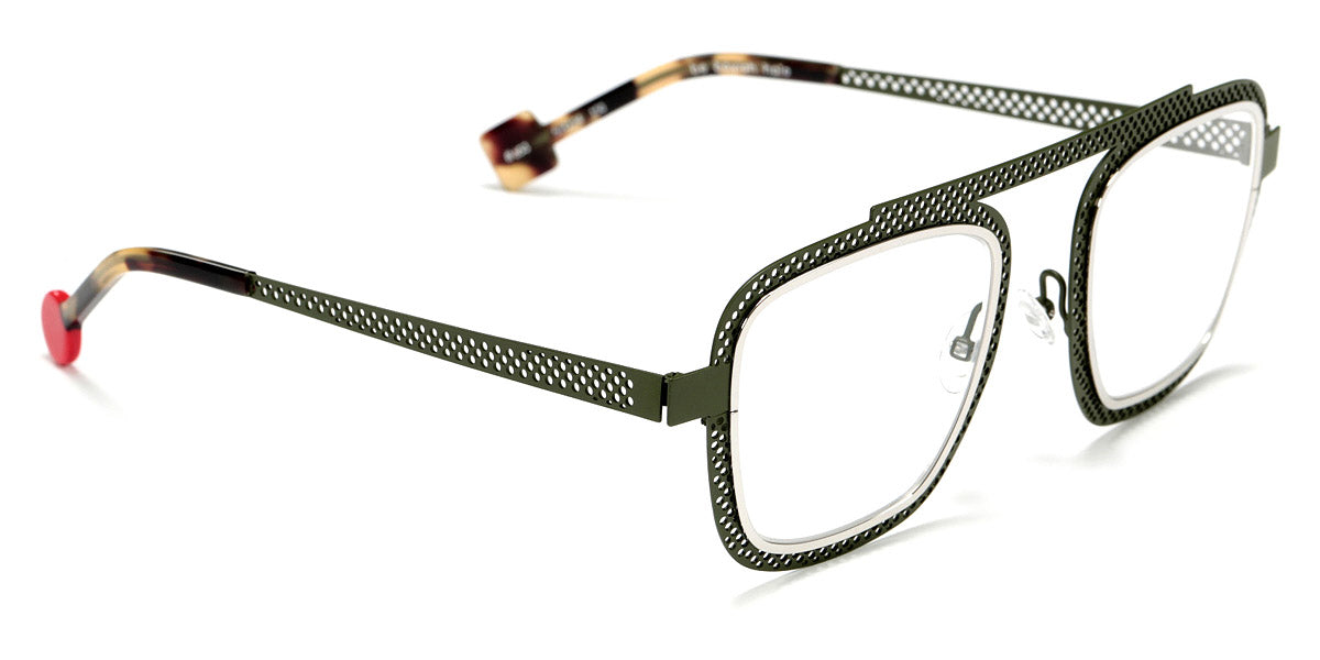 Sabine Be® Be Boyish Hole SB Be Boyish Hole 653 52 - Khaki Satin Perforated / Polished Palladium Eyeglasses