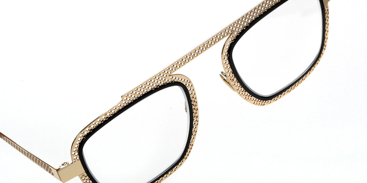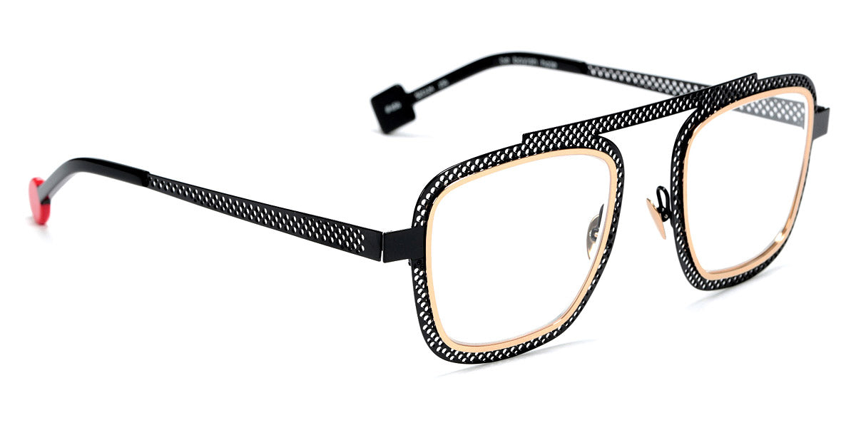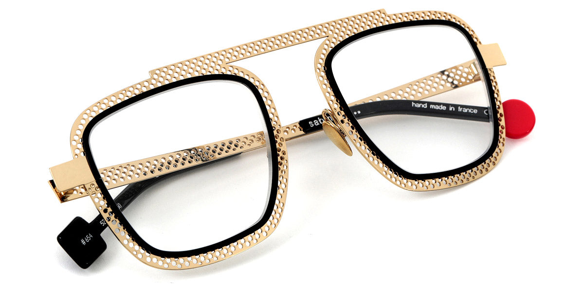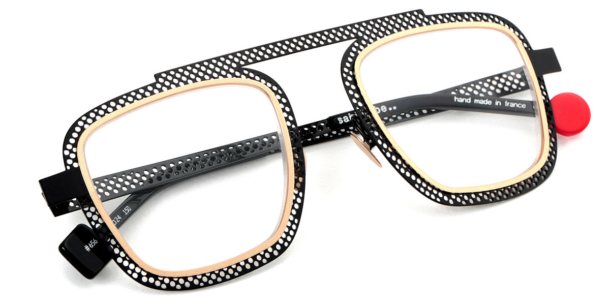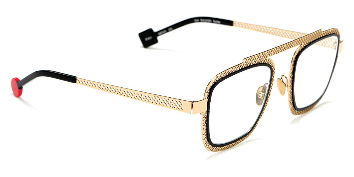 Sabine Be® Be Boyish Hole SB Be Boyish Hole 654 52 - Pale Yellow Gold Polished Perforated / Shiny Black Eyeglasses
