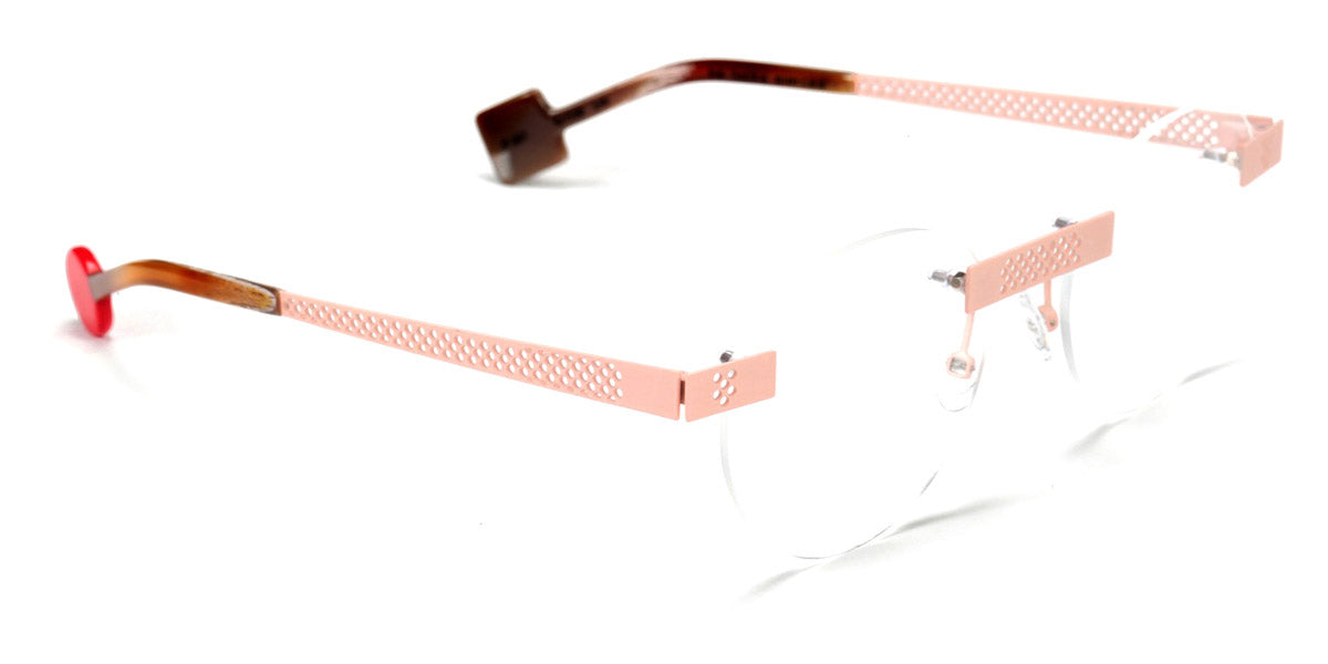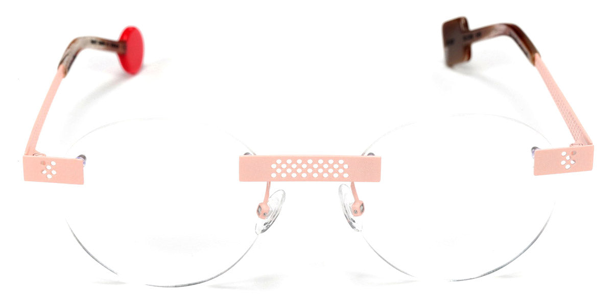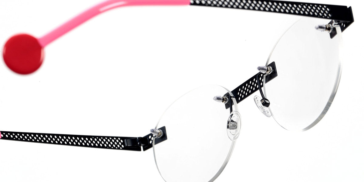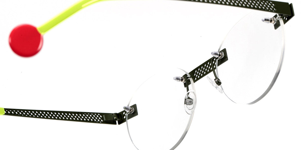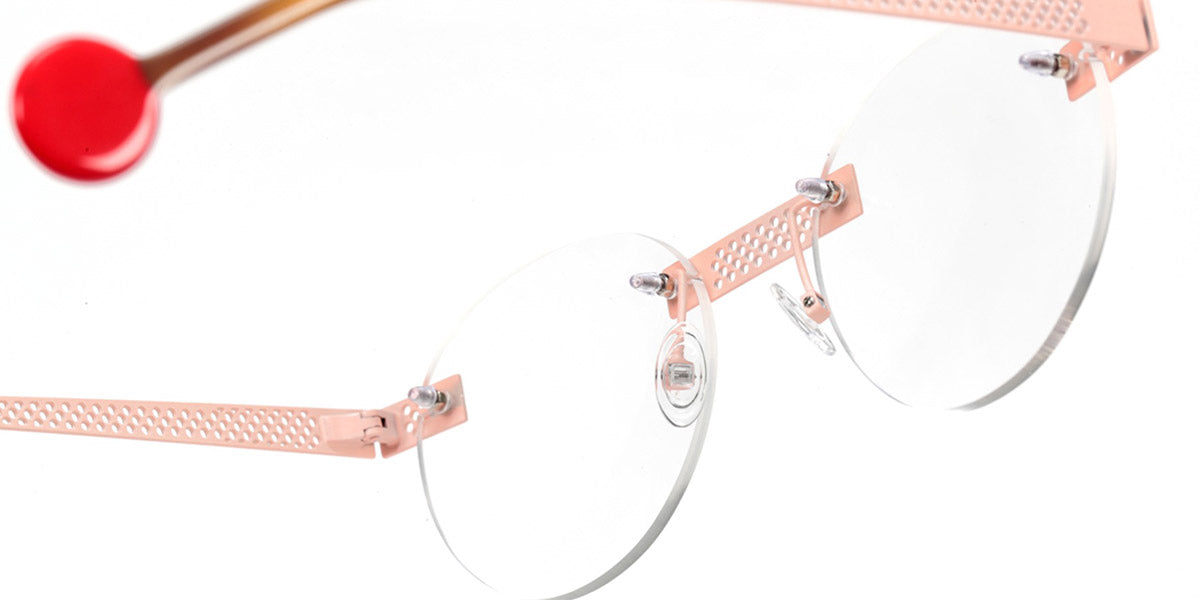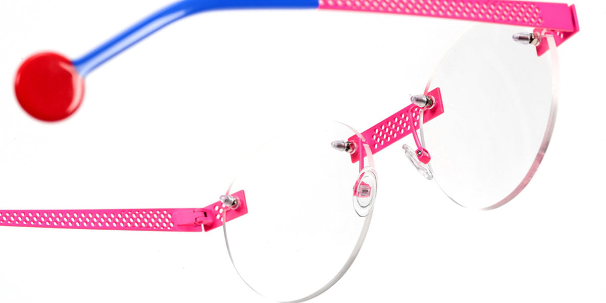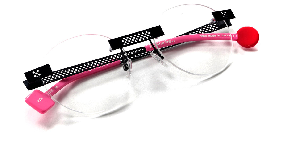 Be Lucky Pierced Eyeglasses by Sabine Be. Color: Satin Neon Pink, Shiny Midnight Blue, Satin Khaki, Satin Salmon, Size: 51-20-145. The Be Lucky Pierced eyeglasses are designed for individuals who favor bold, innovative designs. Sabine Be has created a pair of eyeglasses that serve as a unique accessory, effortlessly blending daring fashion with functionality. These frames capture attention and bring a sense of playfulness to everyday wear, making them perfect for those who enjoy expressing their personality through eyewear. Whether in a professional setting or casual environment, the Be Lucky Pierced eyeglasses stand out as a fresh, stylish addition to any collection.