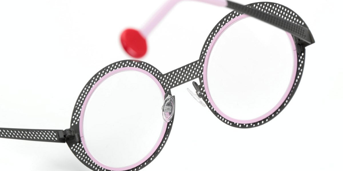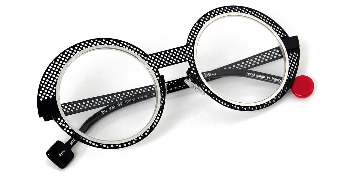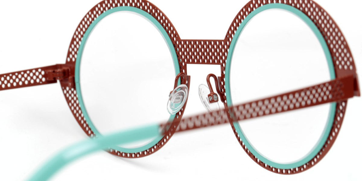 Be Val De Loire Hole Eyeglasses by Sabine Be. Color: Shiny Camel Perforated / Turquoise Satin, Baby Pink Perforated Satin / Neon Orange Satin, Rose Gold Polished Perforated / Navy Satin, Perforated Satin Khaki / Polished Yellow Gold, Perforated Satin Taupe / Baby Pink Satin, Dark Ruthenium Polished Perforated / Polished Rose Gold, Satin Red Perforated / Neon Pink Satin, Nude Satin Perforated / Polished Rose Gold, Satin Neon Pink Perforated / Polished Rose Gold, Satin Midnight Blue Perforated / Polished Palladium, Satin Neon Orange Perforated / Satin Baby Pink, Satin Dark Chocolate Perforated / Polished Rose Gold, Size: 50-23-145. Experience the elegance of Sabine Be's Be Val De Loire Hole eyeglasses, where modern sophistication meets functional allure in a harmonious blend of style. Meticulously crafted with attention to detail, these glasses feature a sleek, contemporary design highlighted by subtle cut-out accents that add a hint of intrigue. Whether you're navigating city streets or enjoying a relaxing getaway, they effortlessly elevate your style with timeless charm.