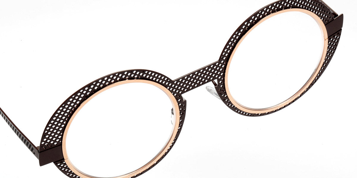 Sabine Be® Be Val De Loire Hole SB Be Val De Loire Hole 567 50 - Satin Dark Chocolate Perforated / Polished Rose Gold Eyeglasses