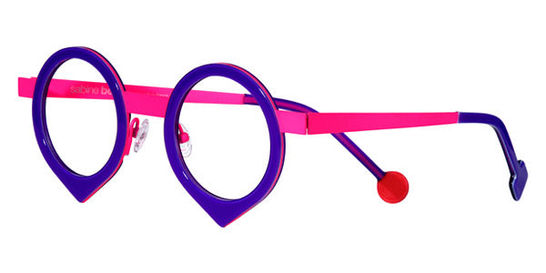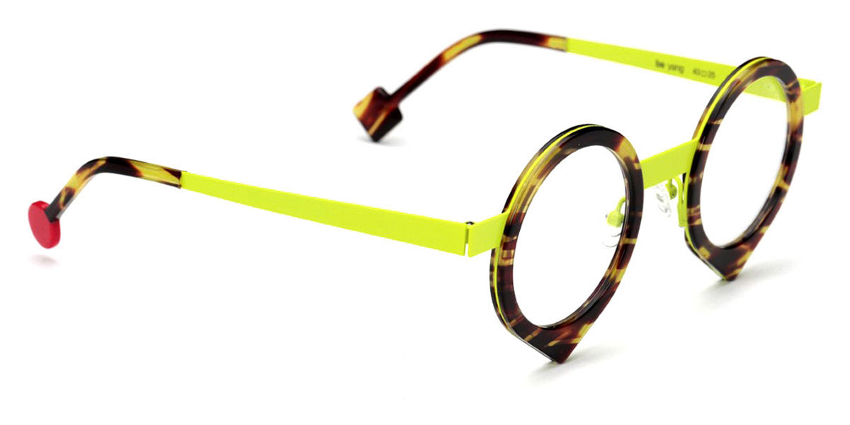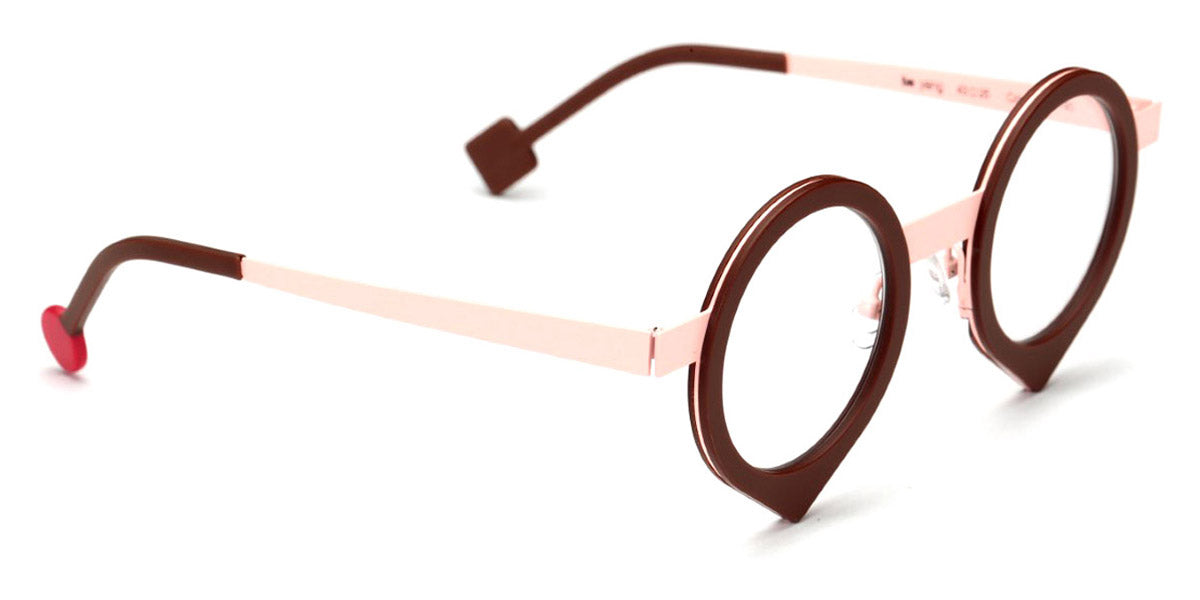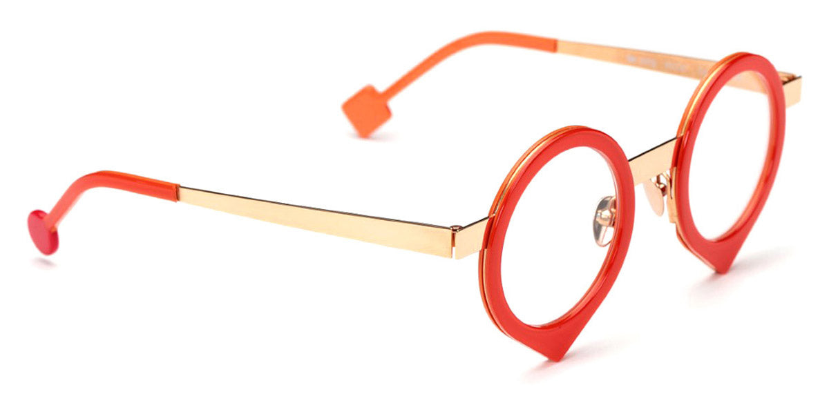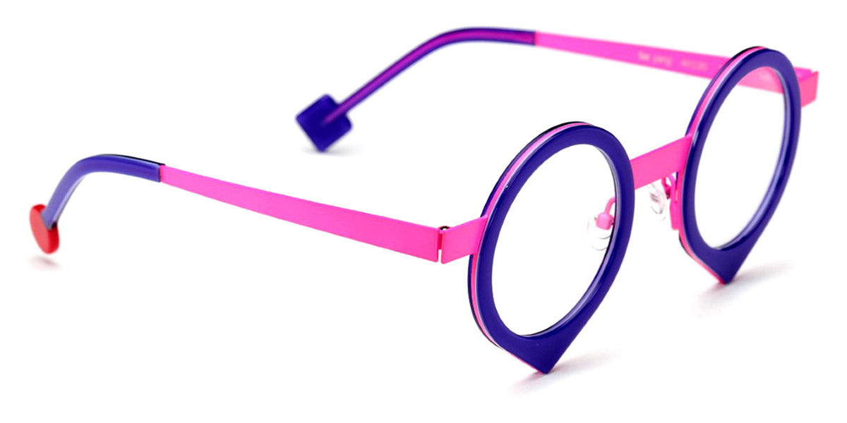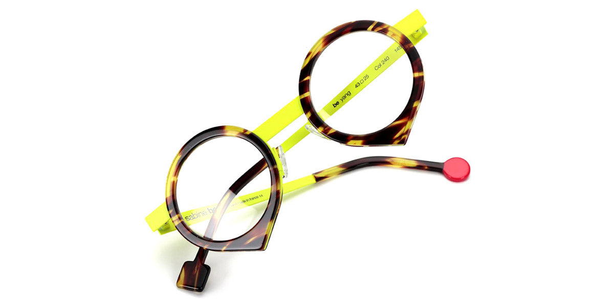 Be Yang Eyeglasses by Sabine Be. Color: Matte Brown / Satin Salmon, Shiny Baby Pink / Satin Neon Green, Shiny Dark Choco / Satin Purple, Shiny Nude / Satin Neon Orange, Shiny Orange / Polished Rose Gold, Shiny Purple / Satin Neon Pink, Shiny Red / Satin Red, Shiny Tokyo Tortoise / Satin Blue Klein, Shiny Veined Tortoise / Satin Neon Yellow, Shiny Vintage Tortoise / Satin Shiny Navy Blue, Size: 43-25-145. Handmade in France from high-quality acetate and metal, the Be Yang eyeglasses from Sabine Be provide comfort, durability, and timeless beauty - making them ideal for anyone who wants to add sophistication to their look without sacrificing practicality. The atypical round silhouette with southern tips creates a unique look that won't be neglected.