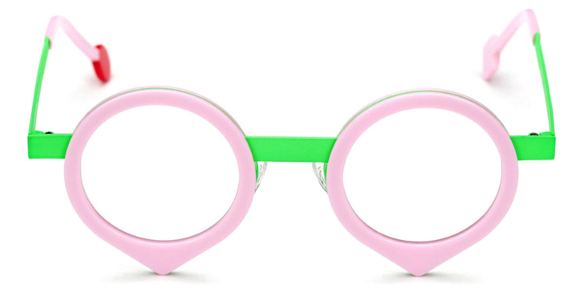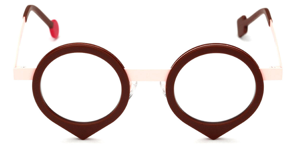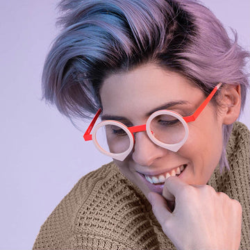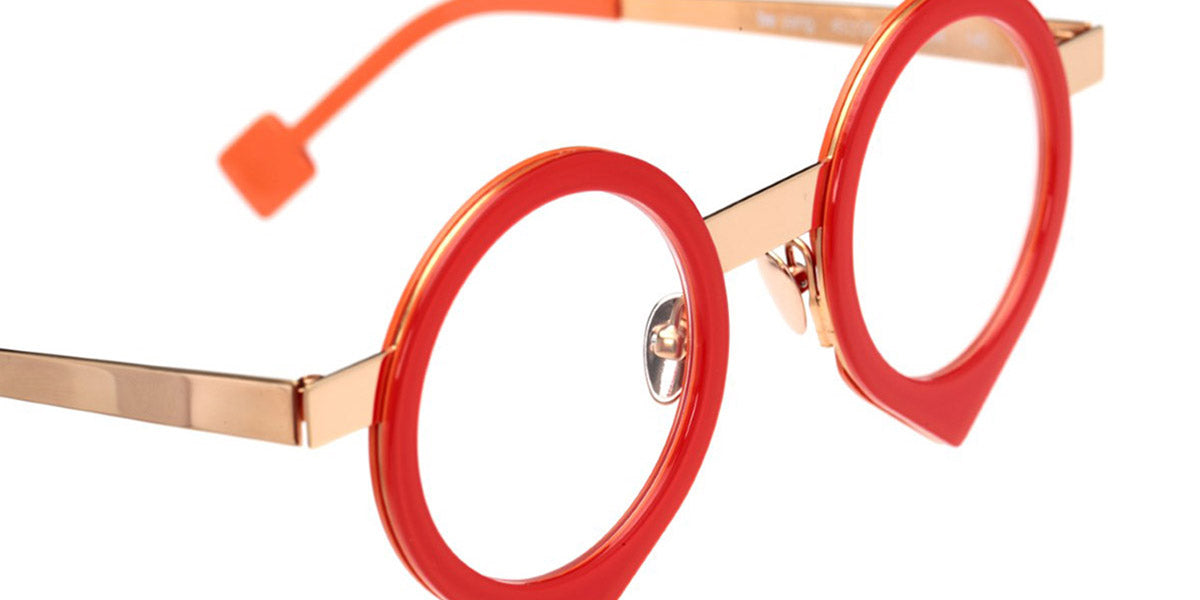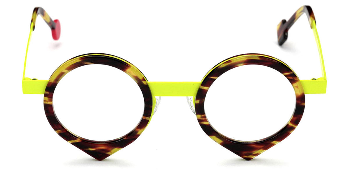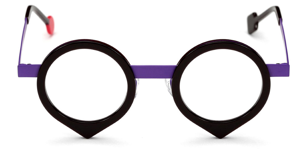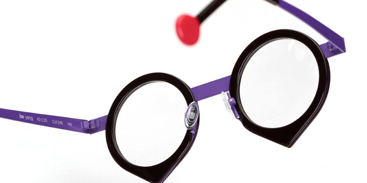 Be Yang Eyeglasses by Sabine Be. Color: Matte Brown / Satin Salmon, Shiny Baby Pink / Satin Neon Green, Shiny Dark Choco / Satin Purple, Shiny Nude / Satin Neon Orange, Shiny Orange / Polished Rose Gold, Shiny Purple / Satin Neon Pink, Shiny Red / Satin Red, Shiny Tokyo Tortoise / Satin Blue Klein, Shiny Veined Tortoise / Satin Neon Yellow, Shiny Vintage Tortoise / Satin Shiny Navy Blue, Size: 43-25-145. Handmade in France from high-quality acetate and metal, the Be Yang eyeglasses from Sabine Be provide comfort, durability, and timeless beauty - making them ideal for anyone who wants to add sophistication to their look without sacrificing practicality. The atypical round silhouette with southern tips creates a unique look that won't be neglected.
