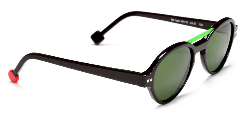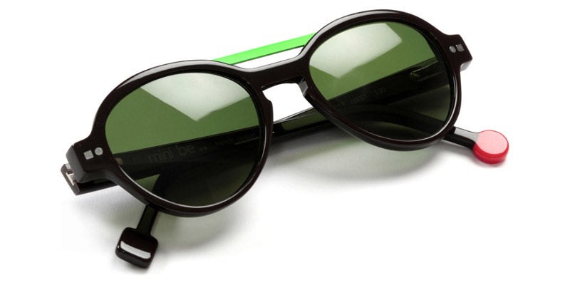 Mini Be Hype Sun T46 Sunglasses by Sabine Be. Color: Matte Blue Klein / Satin Turquoise, Matte Neon Pink / Satin Light Purple, Matte Purple / Satin Neon Orange, Matte Translucent Gray / Satin Neon Pink, Shiny Dark Choco Brown / Polished Palladium, Shiny Fawn Tortoise / Neon Yellow, Shiny Tokyo Tortoise / Satin Blue Klein, Size: 46-18-130. Special shades for your kid! The Mini Be Hype T46 sunglasses feature a double metal bridge in different colors to bring a touch of fun to any outfit. The frame is made from top-grade acetate and comes paired with high-end lenses that are guaranteed to protect your child's eyes from the sun's harmful ultraviolet (UV) rays.