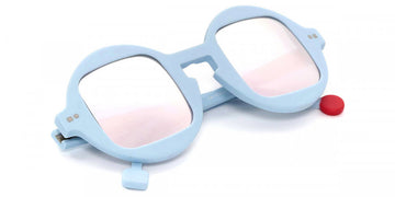 Mini Be Whaouh ! Sun Sunglasses by Sabine Be. Color: Matte Baby Blue, Matte Translucent Beige, Shiny Fawn Tortoise, Shiny Navy Blue, Shiny Translucent Neon Orange, Shiny Translucent Red, Size: 40-27-130. Sabine be is a leader in fashion and eyewear design, providing stunning designs of kids' glasses to ensure your child looks great and has the eye protection they need. Featuring square lenses in a round frame, the Mini Be Whaouh sunglasses are sure to turn some heads. It’s no wonder this model has gained such a huge popularity amongst both adults and kids. So, if you’re looking for unique shades for your child, this frame by Sabine Be has you covered.