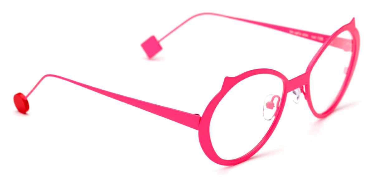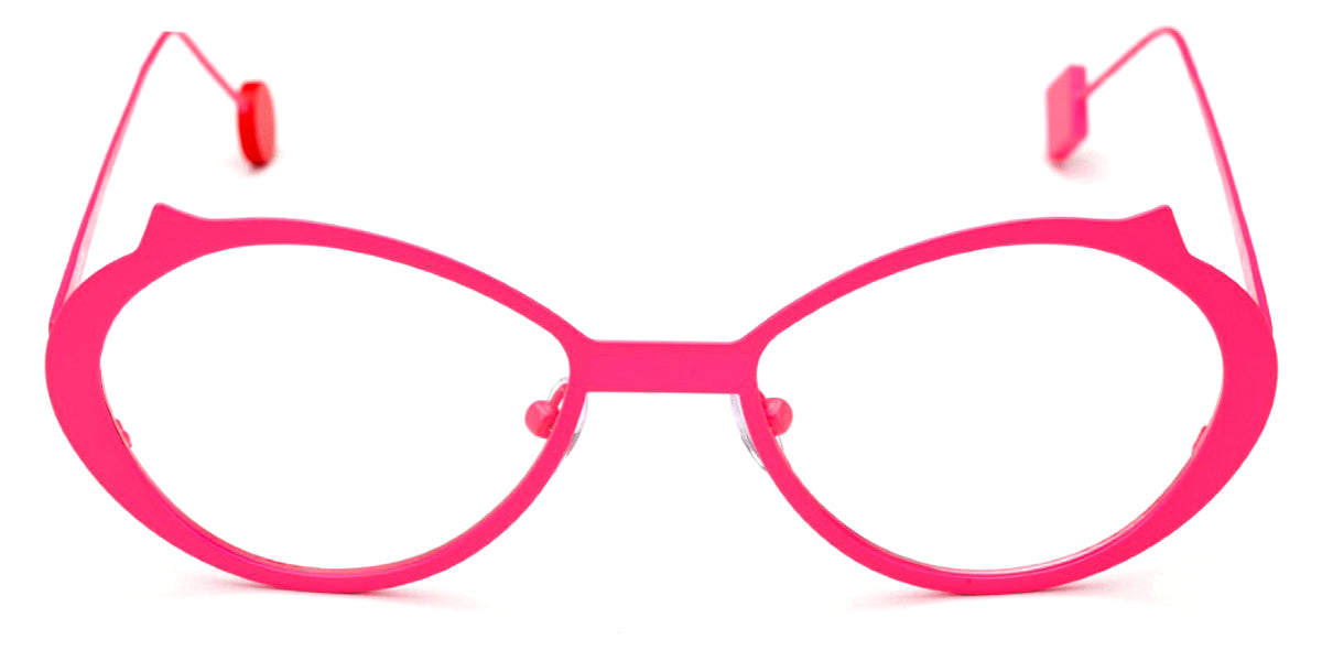 Be Cat'S Slim Eyeglasses by Sabine Be. Color: Polished Palladium, Polished Rose Gold, Polished Ruthenium, Satin Baby Pink, Satin Blue Klein, Satin Neon Orange, Satin Neon Pink, Satin Turquoise, Satin White, Size: 51-20-140. Featuring little cat ears on the top of the frame, the Be Cat's Slim frame by Sabine Be is a fun and unique way to show your playful and romantic personality. Different from traditional eyeglasses, the Be Cat's has a unique oval shape and comes equipped with scratch-resistant and impact-resistant lenses. Their wide range of color options provides a choice of elegant and classic hues alongside novelty Sabine Be palettes. Wake up the catwoman in you by wearing these ultra-feminine metal glasses with little cat ears.