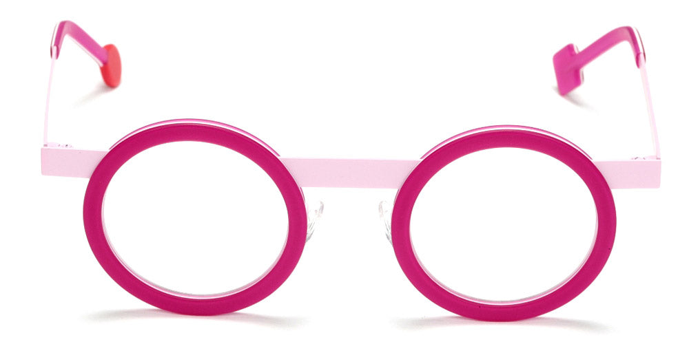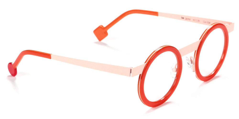 Be Gipsy Eyeglasses by Sabine Be. Color: Shiny Orange / Satin Salmon, Shiny Midnight Blue / Polished Palladium, Matte Tokyo Tortoise / Satin Turquoise, Shiny Tokyo Tortoise / Satin Blue Klein, Matte Vanilla Choco / Satin Neon Orange, Matte Fawn Tortoise / Matte Palladium, Shiny Blonde Veined Tortoise / Satin Ivory, Matte Taup / Satin Baby Pink, Shiny Fauve Tortoise / Satin Neon Yellow, Shiny Veined Tortoise / Satin Neon Green, Shiny White / Polished Rose Gold, Matt Marbled Slate Gray / Shiny Camel, Matt Marble Mouse Gray / Polished Ruthenium, Matt Marbled Turquoise / Satin Neon Orange, Shiny Cherry Tortoise / Polished Rose Gold, Shiny Vintage Horn / Satin Gray, Matte Translucent Light Green / Ruthenium, Matte Blue Klein / Satin Neon Pink, Shiny Vintage Tortoise/ Satin Red, Matte Translucent Fuchsia / Satin Pastel Pink, Shiny Black Diamond Tips / Black Satin, Shiny Dark Choco / Satin Neon Green, Shiny Vintage Horn / Satin White, Shiny Tortoiseshell / Satin Black, Shiny Tokyo Tortoiseshell / Satin Ivory, Shiny Pinkish Tortoiseshell / Satin Baby Pink, Size: 43-26-140. Ideally round Be Gipsy eyeglasses combine metal and acetate with a seventies style. The iconic silhouette fits all faces, which makes it a perfect choice. With frames available in colorful palettes from pastels to bold hues, the eyeglasses offer something for everyone. So, whether you’re looking for a fashion statement, a unique and artistic accessory, or just some added funk to your outfit, the Be Gipsy eyeglasses by Sabine Be have you covered!