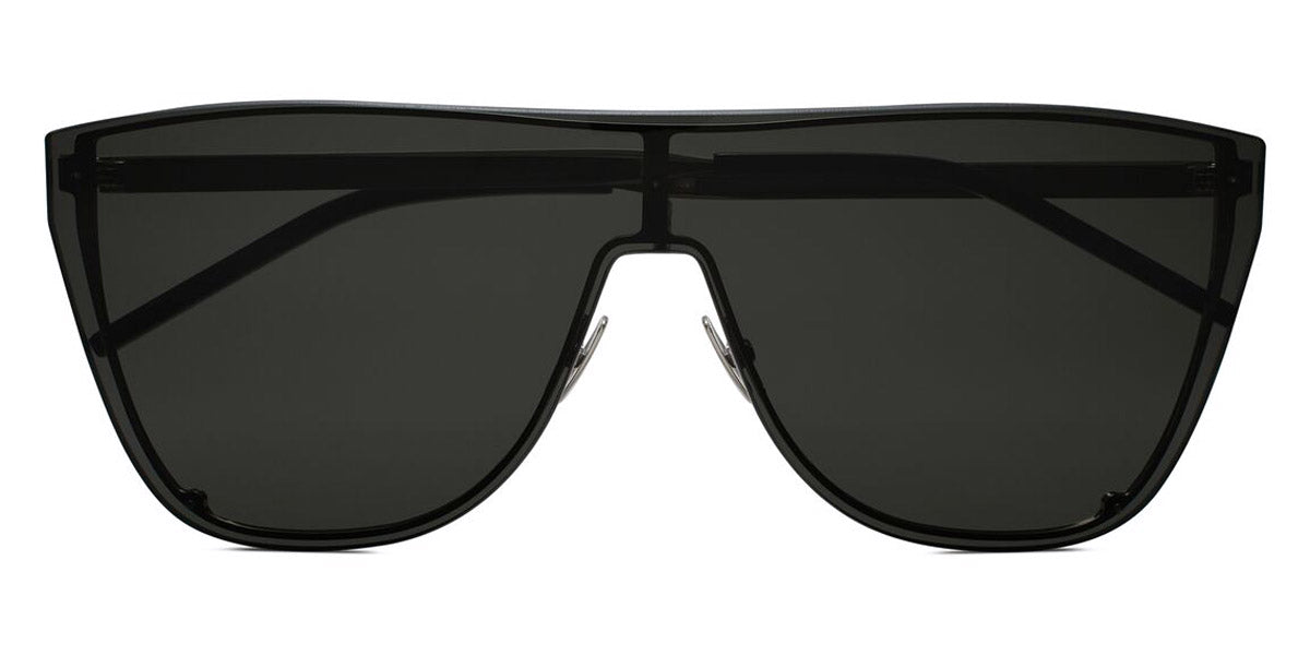 SL 1-B MASK Sunglasses by Saint Laurent. Frame Material: Metal, Frame Shape: Shield, Frame Type: Rimless, Color: Black / Black, Black / Silver Flash, Silver / Gray, Size: 99-1-145. The famous French brand Saint Laurent creates glasses for women and men and deservedly receives recognition after each release and presentation at the fashion shows. The manufacturer considers the collection of sunglasses and eyeglasses as part of the company concept, they are perfectly combined with clothes, shoes, and other products released under the name of Saint Laurent. The frames are made of premium quality plastic or metal, and thanks to this solution, each model of the brand is designed for many years of use. Daring decisions and ideas are implemented in these accessories which have gained popularity among stylish people around the world. Yves Saint Laurent turned high fashion upside down, bringing into it feminine sensuality and masculine seductiveness.