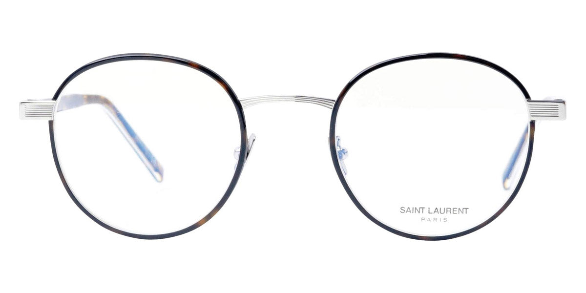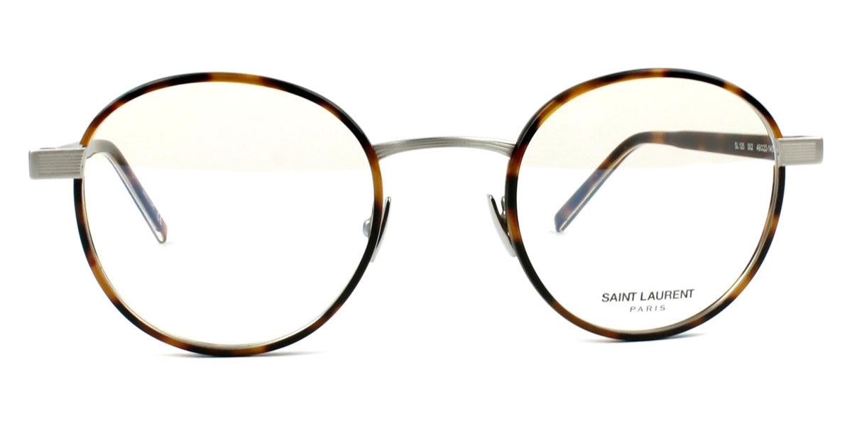 SL 125 Eyeglasses by Saint Laurent. Frame Material: Metal, Frame Shape: Round, Frame Type: Full Rim, Color: Black, Havana 002, Havana 005, Size: 49-22-145. The famous French brand Saint Laurent creates glasses for women and men and deservedly receives recognition after each release and presentation at the fashion shows. The manufacturer considers the collection of sunglasses and eyeglasses as part of the company concept, they are perfectly combined with clothes, shoes, and other products released under the name of Saint Laurent. The frames are made of premium quality plastic or metal, and thanks to this solution, each model of the brand is designed for many years of use. Daring decisions and ideas are implemented in these accessories which have gained popularity among stylish people around the world. Yves Saint Laurent turned high fashion upside down, bringing into it feminine sensuality and masculine seductiveness.