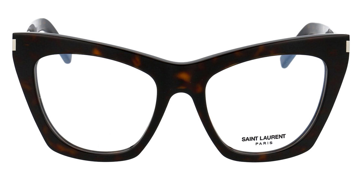 SL 214 KATE OPT Eyeglasses by Saint Laurent. Frame Material: Acetate, Frame Shape: Cat-Eye, Frame Type: Full Rim, Color: Black, Havana, Size: 55-20-145. The famous French brand Saint Laurent creates glasses for women and men and deservedly receives recognition after each release and presentation at the fashion shows. The manufacturer considers the collection of sunglasses and eyeglasses as part of the company concept, they are perfectly combined with clothes, shoes, and other products released under the name of Saint Laurent. The frames are made of premium quality plastic or metal, and thanks to this solution, each model of the brand is designed for many years of use. Daring decisions and ideas are implemented in these accessories which have gained popularity among stylish people around the world. Yves Saint Laurent turned high fashion upside down, bringing into it feminine sensuality and masculine seductiveness.