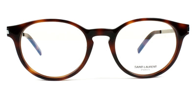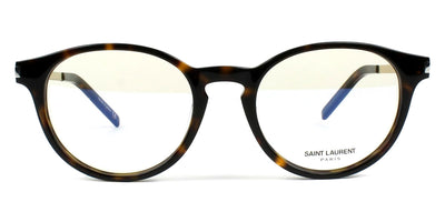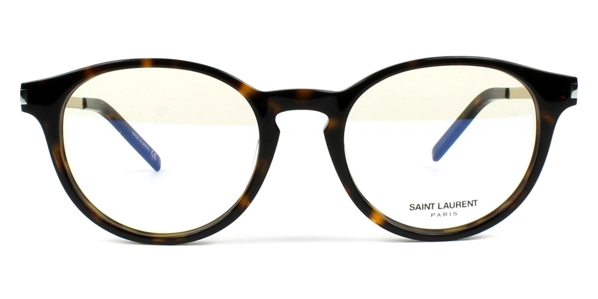 SL 25 Eyeglasses by Saint Laurent. Frame Material: Plastic and Metal, Frame Shape: Round, Frame Type: Full Rim, Color: Gold, Silver 001, Silver 002, Size: 49-19-140. The famous French brand Saint Laurent creates glasses for women and men and deservedly receives recognition after each release and presentation at the fashion shows. The manufacturer considers the collection of sunglasses and eyeglasses as part of the company concept, they are perfectly combined with clothes, shoes, and other products released under the name of Saint Laurent. The frames are made of premium quality plastic or metal, and thanks to this solution, each model of the brand is designed for many years of use. Daring decisions and ideas are implemented in these accessories which have gained popularity among stylish people around the world. Yves Saint Laurent turned high fashion upside down, bringing into it feminine sensuality and masculine seductiveness.