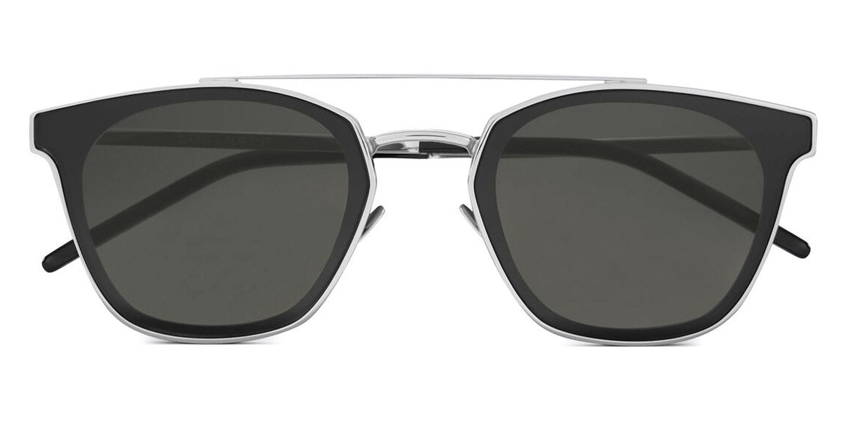 SL 28 Metal Sunglasses by Saint Laurent. Frame Material: Metal, Frame Shape: Geometric, Frame Type: Full Rim, Color: Black / Gray AR, Silver / Gray AR, Silver / Silver AR Mirrored, Size: 61-17-145. The famous French brand Saint Laurent creates glasses for women and men and deservedly receives recognition after each release and presentation at the fashion shows. The manufacturer considers the collection of sunglasses and eyeglasses as part of the company concept, they are perfectly combined with clothes, shoes, and other products released under the name of Saint Laurent. The frames are made of premium quality plastic or metal, and thanks to this solution, each model of the brand is designed for many years of use. Daring decisions and ideas are implemented in these accessories which have gained popularity among stylish people around the world. Yves Saint Laurent turned high fashion upside down, bringing into it feminine sensuality and masculine seductiveness.