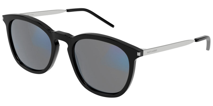 SL 360 Sunglasses by Saint Laurent. Frame Material: Acetate, Frame Shape: Square, Frame Type: Full Rim, Color: Black/Silver / Gray Photocromatic, Size: 53-21-145. The famous French brand Saint Laurent creates glasses for women and men and deservedly receives recognition after each release and presentation at the fashion shows. The manufacturer considers the collection of sunglasses and eyeglasses as part of the company concept, they are perfectly combined with clothes, shoes, and other products released under the name of Saint Laurent. The frames are made of premium quality plastic or metal, and thanks to this solution, each model of the brand is designed for many years of use. Daring decisions and ideas are implemented in these accessories which have gained popularity among stylish people around the world. Yves Saint Laurent turned high fashion upside down, bringing into it feminine sensuality and masculine seductiveness.