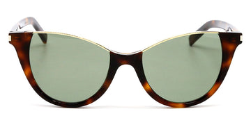 SL 368 STELLA Sunglasses by Saint Laurent. Frame Material: Metal, Frame Shape: Cat-Eye, Frame Type: Full Rim, Color: Black / Black, Havana / Green, Size: 52-19-145. The famous French brand Saint Laurent creates glasses for women and men and deservedly receives recognition after each release and presentation at the fashion shows. The manufacturer considers the collection of sunglasses and eyeglasses as part of the company concept, they are perfectly combined with clothes, shoes, and other products released under the name of Saint Laurent. The frames are made of premium quality plastic or metal, and thanks to this solution, each model of the brand is designed for many years of use. Daring decisions and ideas are implemented in these accessories which have gained popularity among stylish people around the world. Yves Saint Laurent turned high fashion upside down, bringing into it feminine sensuality and masculine seductiveness.