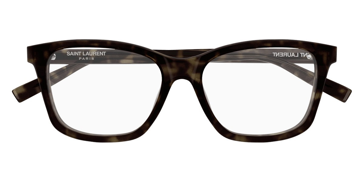 SL 482 Eyeglasses by Saint Laurent. Frame Material: Acetate, Frame Shape: Square, Frame Type: Full Rim, Color: Black, Havana, Yellow, Size: 54-16-145. The famous French brand Saint Laurent creates glasses for women and men and deservedly receives recognition after each release and presentation at the fashion shows. The manufacturer considers the collection of sunglasses and eyeglasses as part of the company concept, they are perfectly combined with clothes, shoes, and other products released under the name of Saint Laurent. The frames are made of premium quality plastic or metal, and thanks to this solution, each model of the brand is designed for many years of use. Daring decisions and ideas are implemented in these accessories which have gained popularity among stylish people around the world. Yves Saint Laurent turned high fashion upside down, bringing into it feminine sensuality and masculine seductiveness.