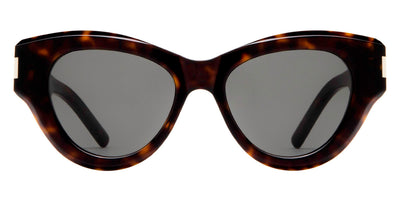 SL 506 Sunglasses by Saint Laurent. Frame Material: Acetate, Frame Shape: Cat-Eye, Frame Type: Full Rim, Color: Black / Black, Havana / Gray, Yellow / Green, Size: 51-18-140. The famous French brand Saint Laurent creates glasses for women and men and deservedly receives recognition after each release and presentation at the fashion shows. The manufacturer considers the collection of sunglasses and eyeglasses as part of the company concept, they are perfectly combined with clothes, shoes, and other products released under the name of Saint Laurent. The frames are made of premium quality plastic or metal, and thanks to this solution, each model of the brand is designed for many years of use. Daring decisions and ideas are implemented in these accessories which have gained popularity among stylish people around the world. Yves Saint Laurent turned high fashion upside down, bringing into it feminine sensuality and masculine seductiveness.